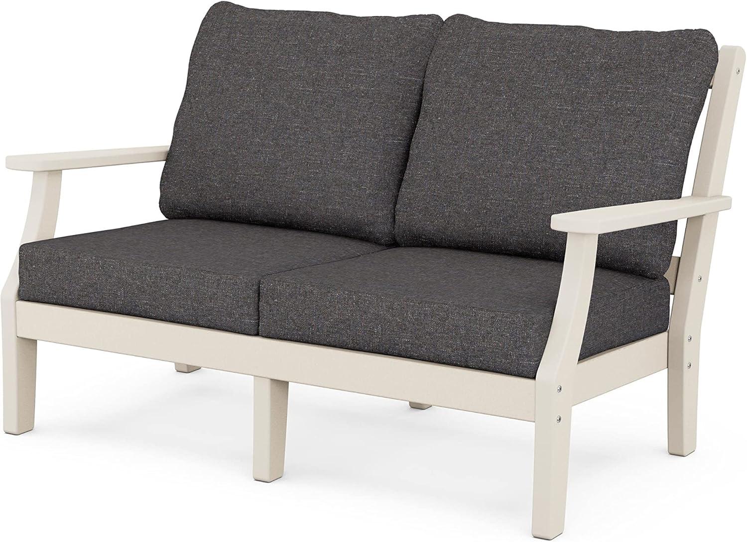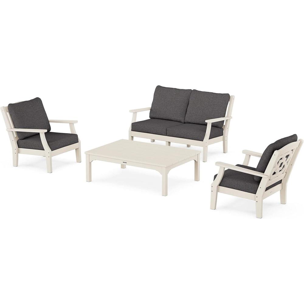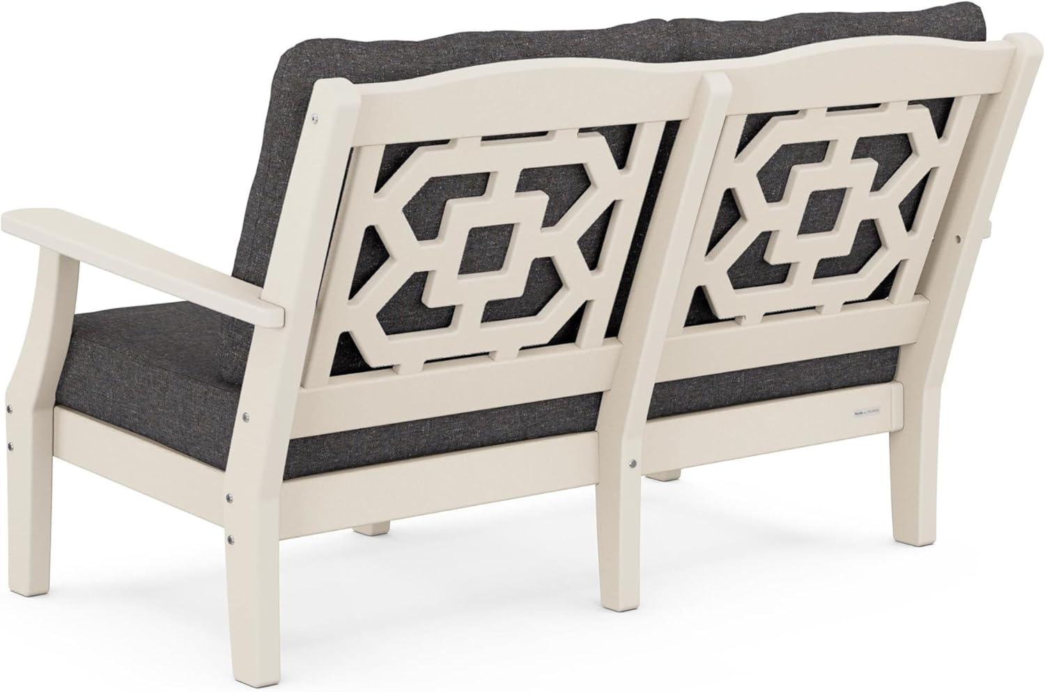 Martha Stewart by POLYWOOD® Chinoiserie 4-Piece Deep Seating Set with Loveseat in Sand/Glacier Spa(Sand / Ash Charcoal)