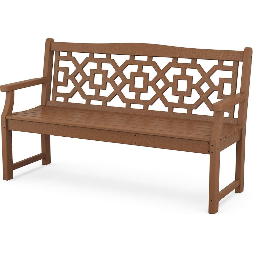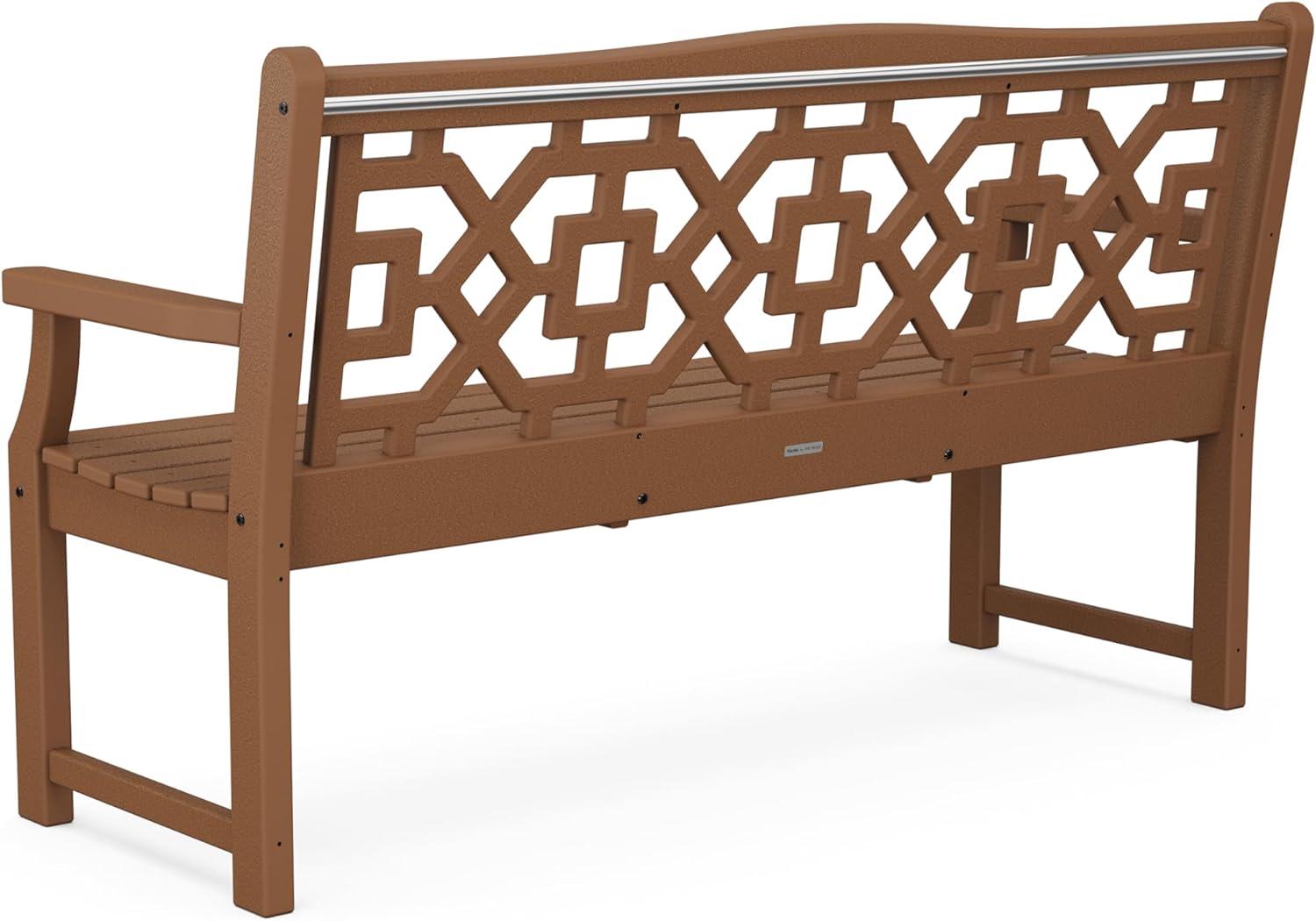 The Martha Stewart by POLYWOOD Chinoiserie 60″ Garden Bench is a natural fit for creating beautiful outdoor spaces. Notes of traditional design are seen in the graceful lines and intricate latticework, delicate details that are balanced by the bench's sturdy frame and all-weather durability. Whether nestled among the blooms or perched on your porch, its peaceful presence will beckon more moments outside.