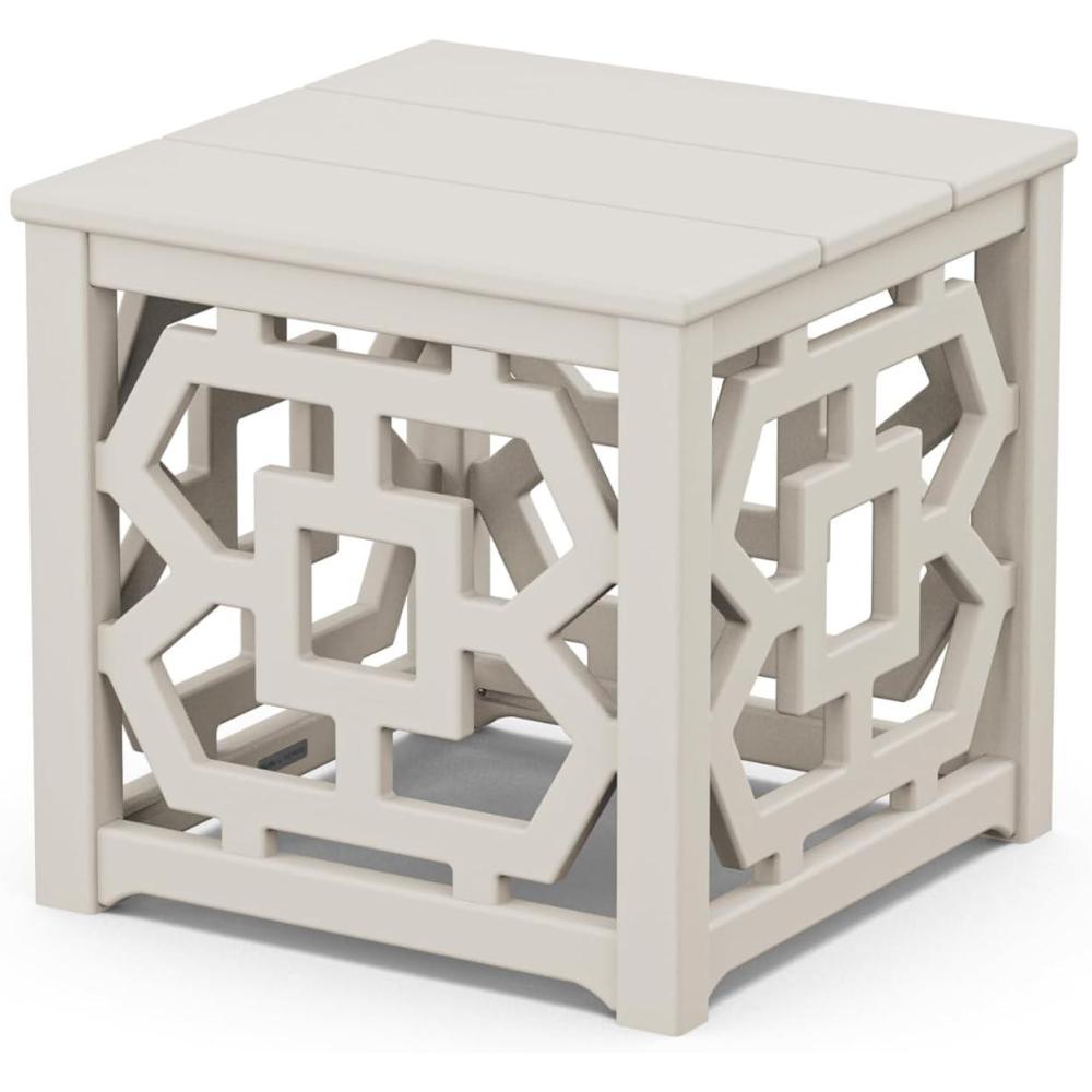 Is your outdoor space looking for that little something extra? Meet the Martha Stewart by POLYWOOD Chinoiserie Accent Table, a functional piece that sits pretty while holding your alfresco accoutrements. While the graceful lines and intricate latticework are delicate in nature, the sturdy all-weather frame is ultra-durable by design.
