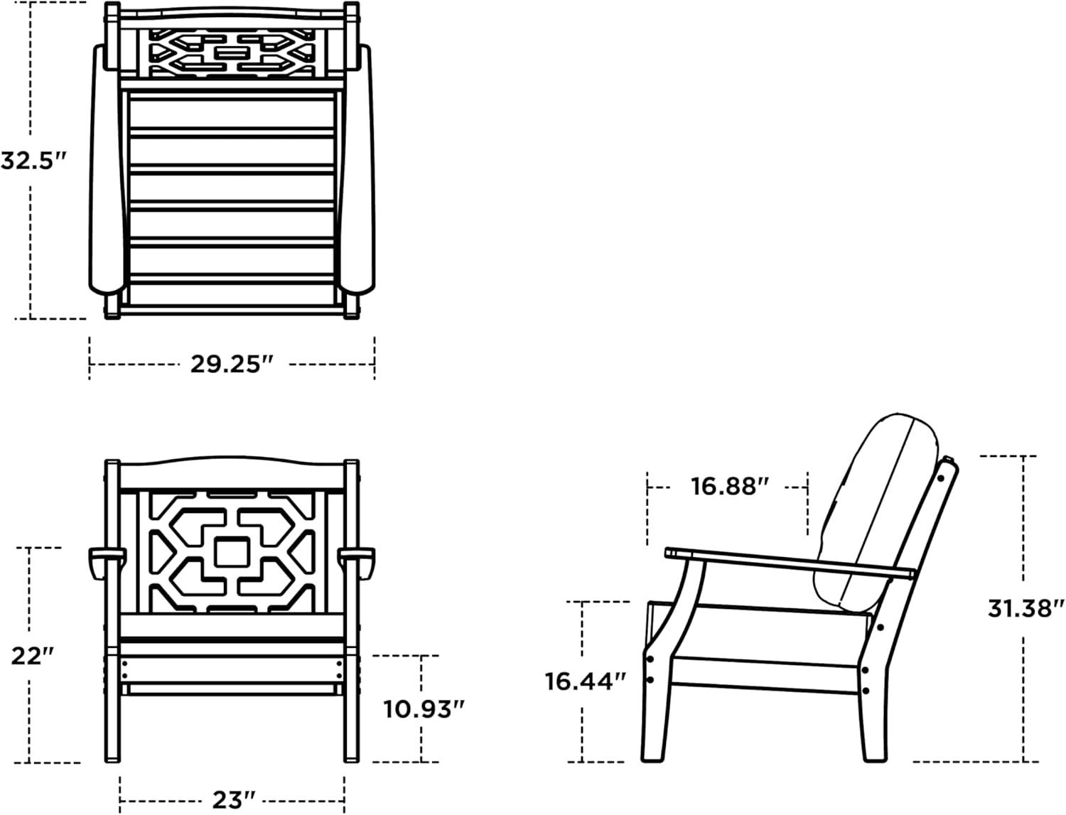 Comfortable luxury that feels right at home. Warm and welcoming, the Martha Stewart by POLYWOOD Chinoiserie Deep Seating Chair invites you in with its classic styling, soft cushions, and embracing silhouette. Notes of traditional design are seen in the graceful lines and intricate latticework, delicate details that are balanced by the chair's sturdy frame and all-weather durability.
