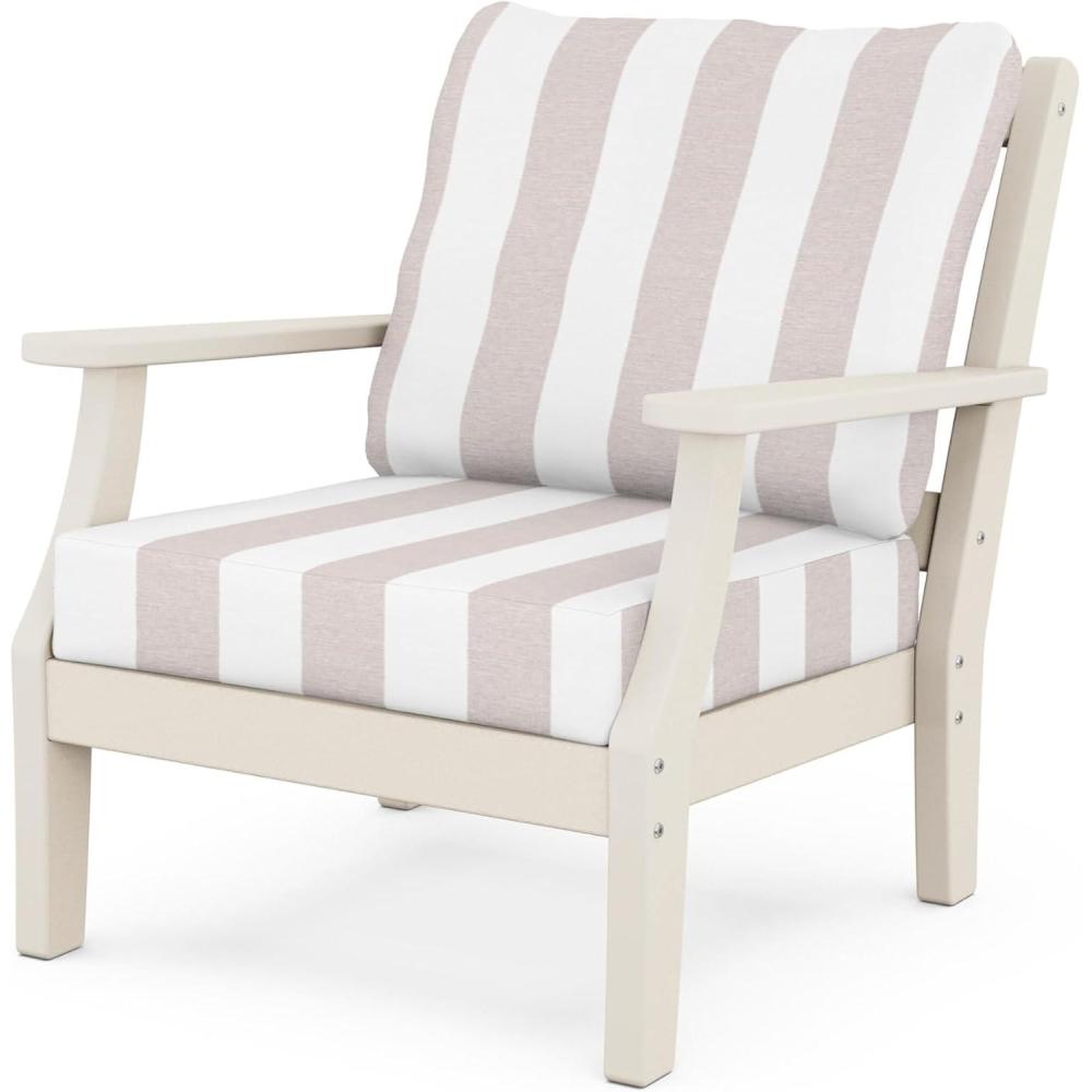 Martha Stewart by POLYWOOD® Chinoiserie Deep Seating Chair in White/Sky Blue(Sand / Cabana Stripe Dune Burlap)