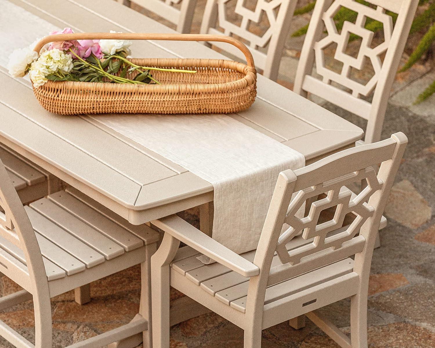 Effortless entertaining starts with the Martha Stewart by POLYWOOD Chinoiserie Dining Arm Chair, a striking design that keeps guests comfortable through the last course. The intricate latticework is the star, while linger-worthy details like a reclined back, contoured seat, and armrests play supporting roles. Designed to last a lifetime, this all-weather, heirloom-worthy dining furniture is somewhere recipes, traditions, and laughter are shared.