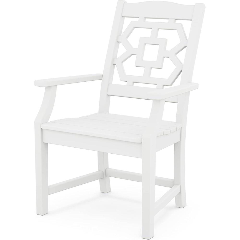 Martha Stewart by POLYWOOD Chinoiserie Outdoor Dining Arm Chair, Slate Grey, Durable HDPE All-Weather, Comfortable Patio Seating with Lattice Back, Backyard, Garden Furniture, Made in The USA(White)