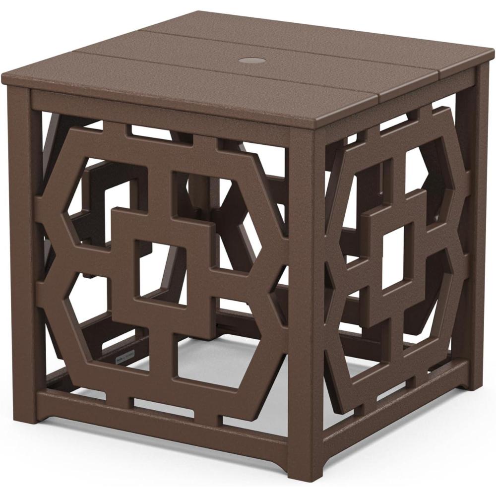 Martha Stewart by POLYWOOD Chinoiserie Outdoor Umbrella Stand Accent Table, White Lattice 22″x22″ Square, Durable HDPE All-Weather Small Patio Furniture for Backyard, Deck, Garden, Made in The USA(Mahogany)