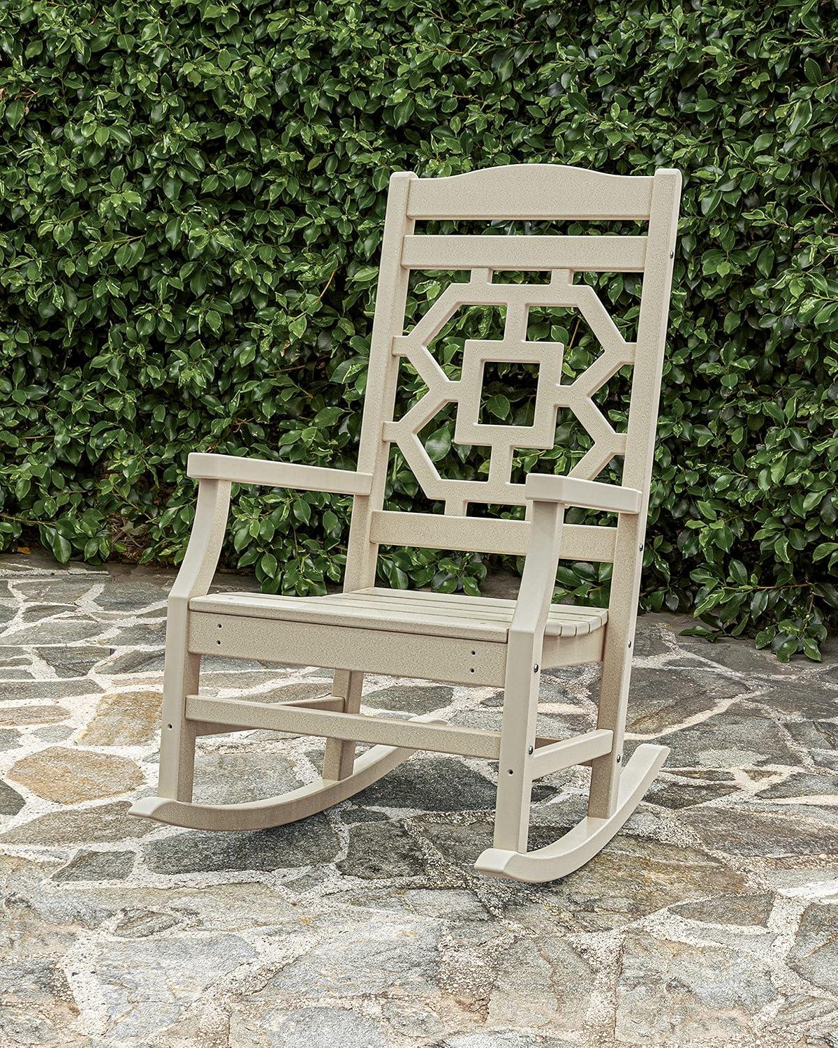 Comfortable luxury that feels right at home. Warm and welcoming, the Martha Stewart by POLYWOOD Chinoiserie Rocking Chair invites you in with its classic styling, gentle motion, and embracing silhouette. Notes of traditional design are seen in the graceful lines and intricate latticework, delicate details that are balanced by the rocker's sturdy frame and all-weather durability.
