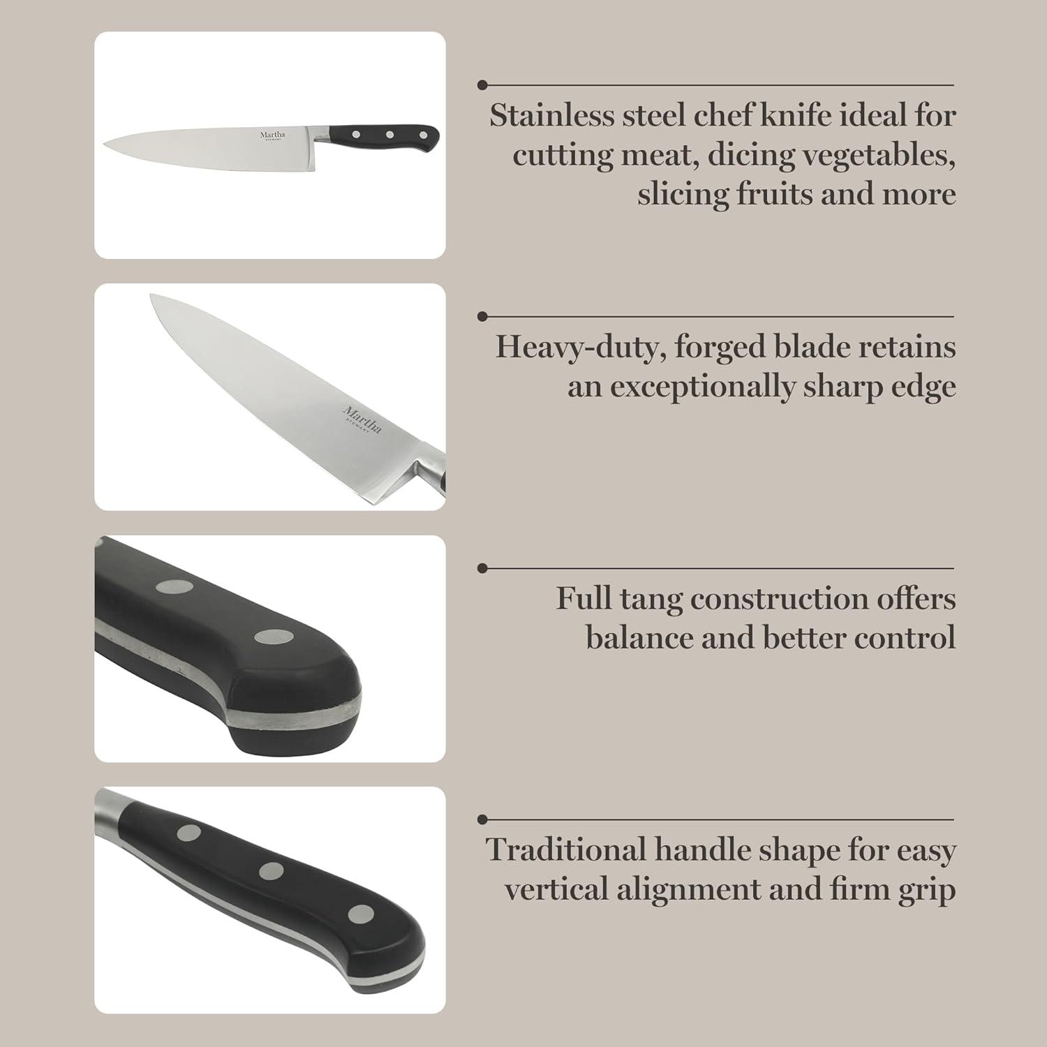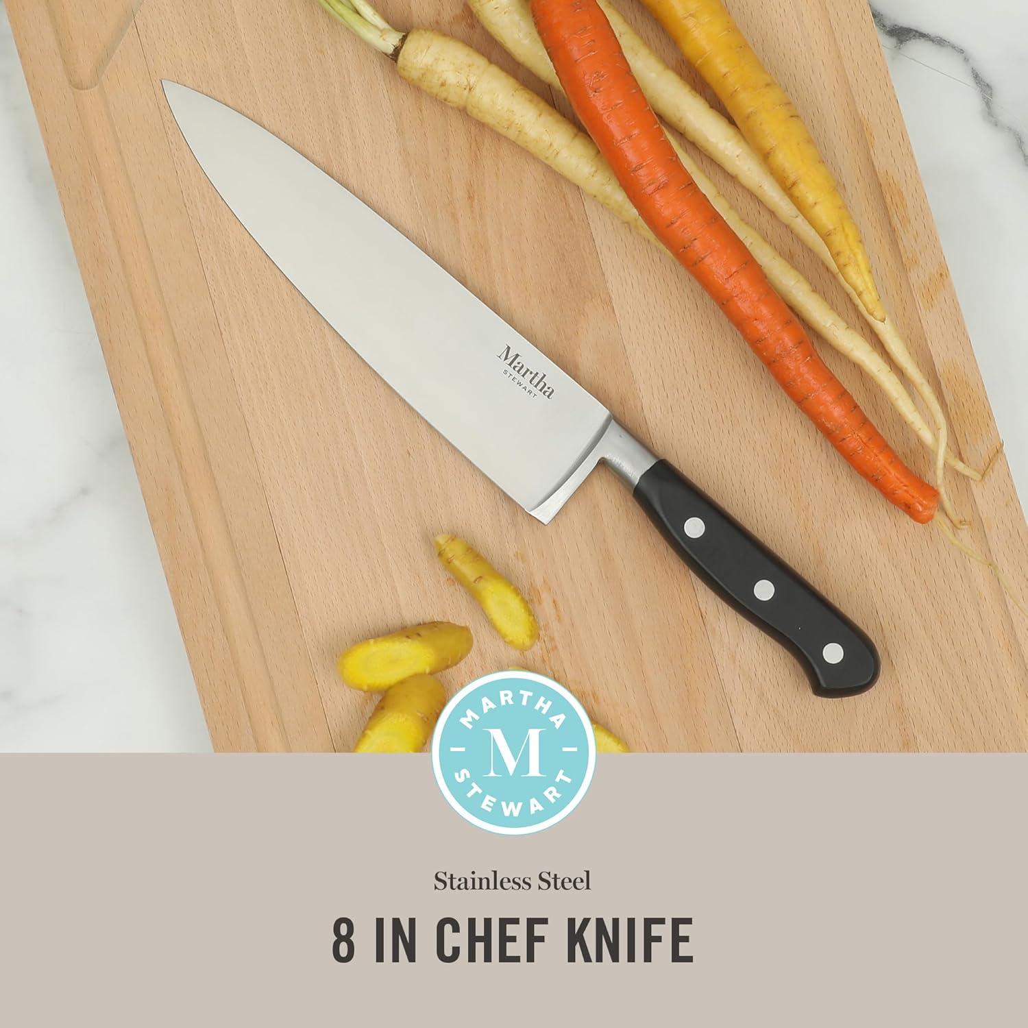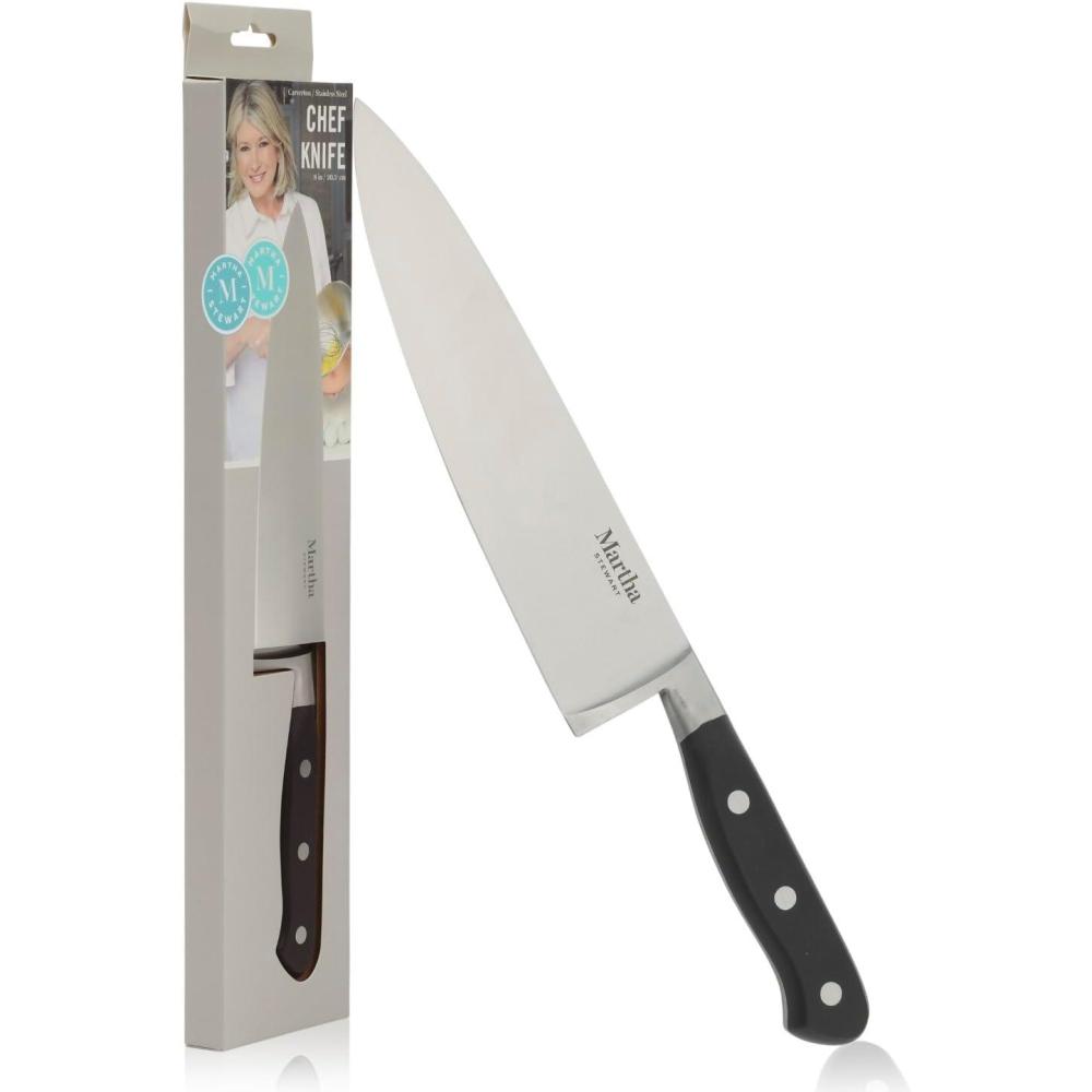 Martha Stewart Carverton 8″ Chef Knife, High Carbon Stainless Steel Kitchen Knives w/Black Triple Riveted Handle(Stainless Steel Blade / Black Handle (Chef’s Knife))
