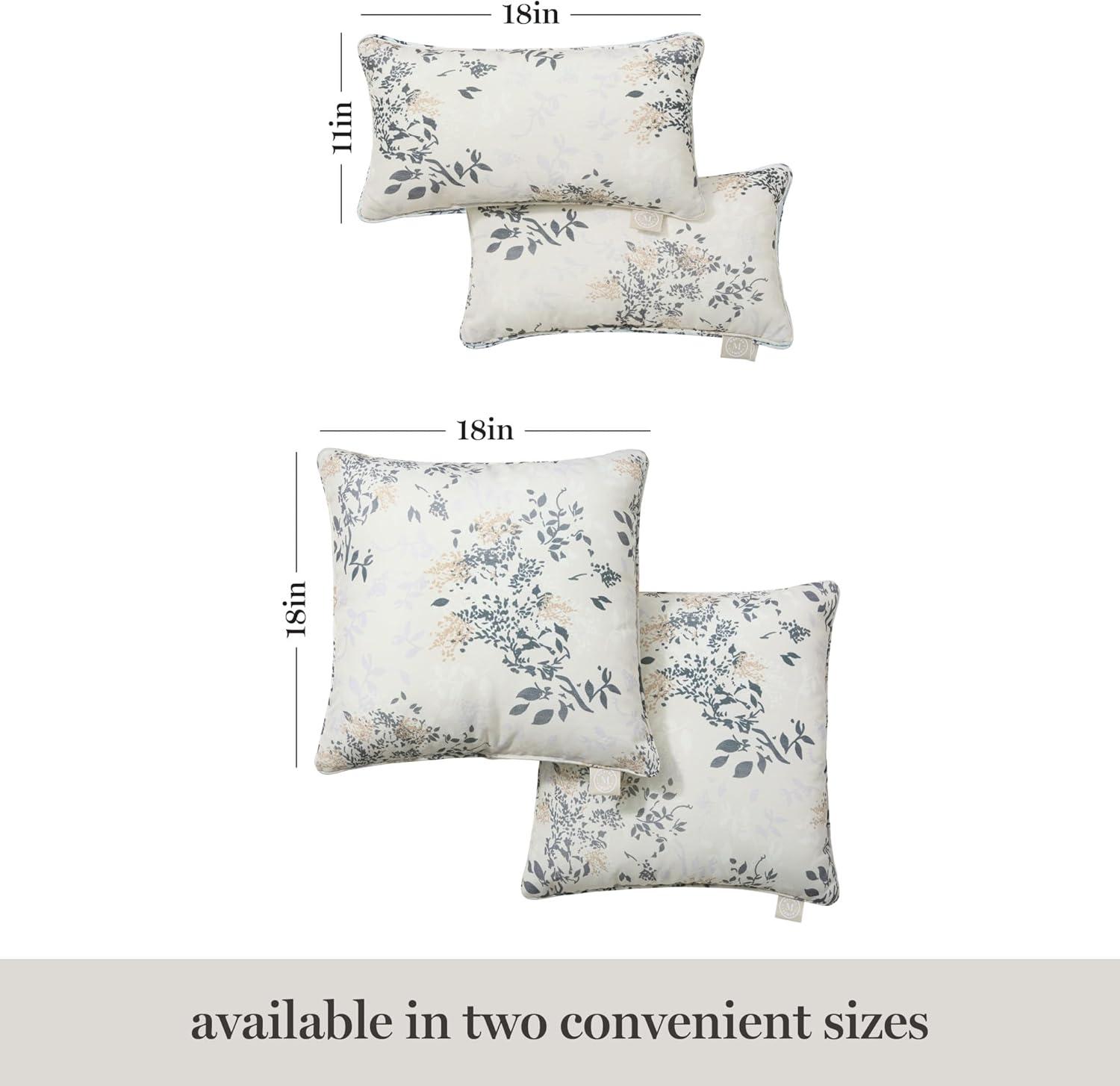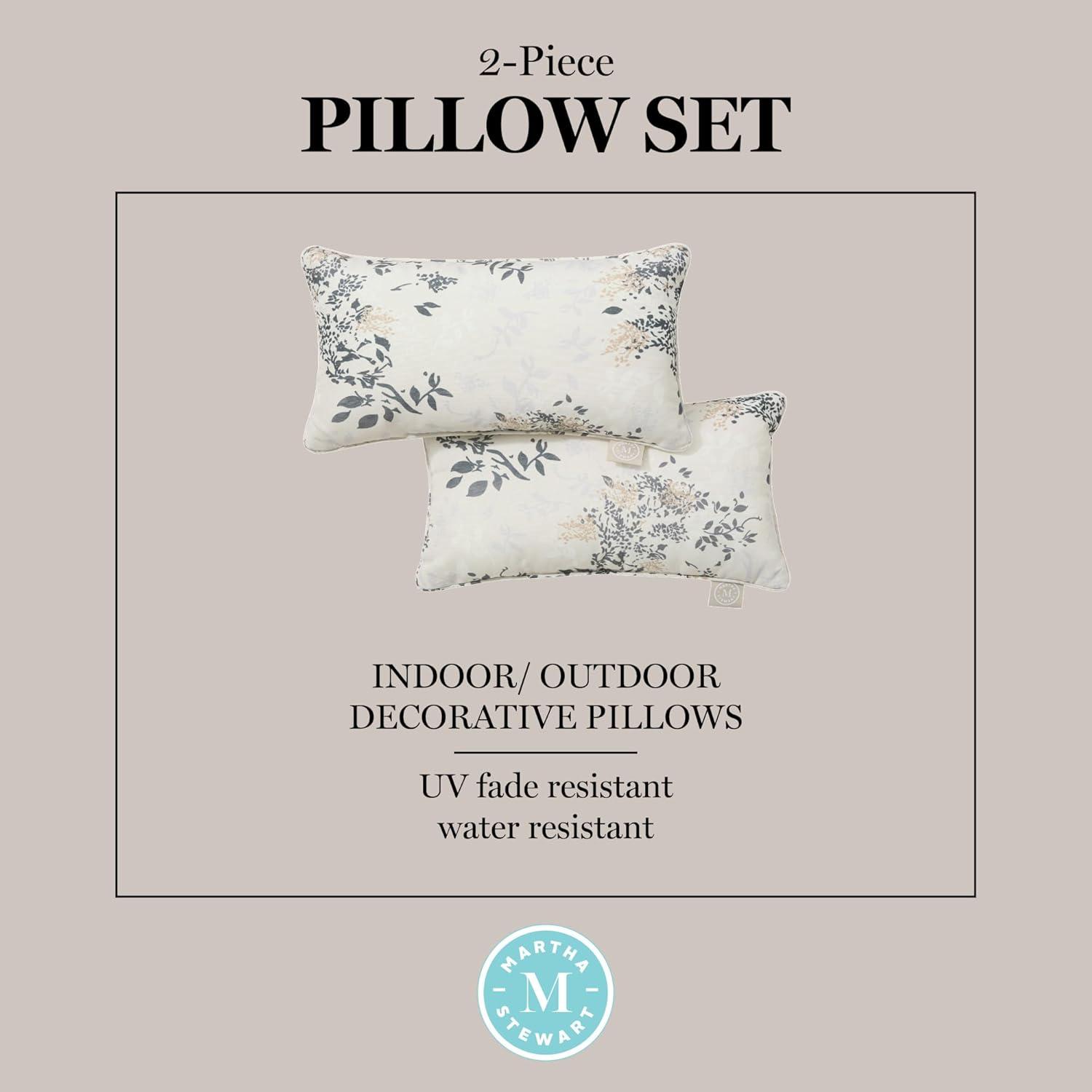 Martha Stewart Charming Foliage Indoor Outdoor Decorative Lumbar Pillow 2-Pack Set, UV Fade Resistant, Water Repellent, Printed Floral Design, Aqua Blue, 11″x18″(Warm Grey)