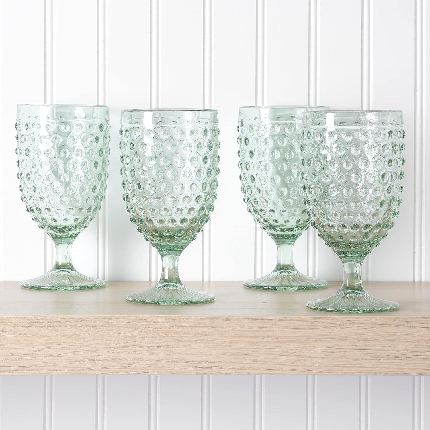 Martha Stewart Chauncey 4-Pack 14.2 oz Hobnail Handmade Glass Goblet – Pink(Green (Hobnail))
