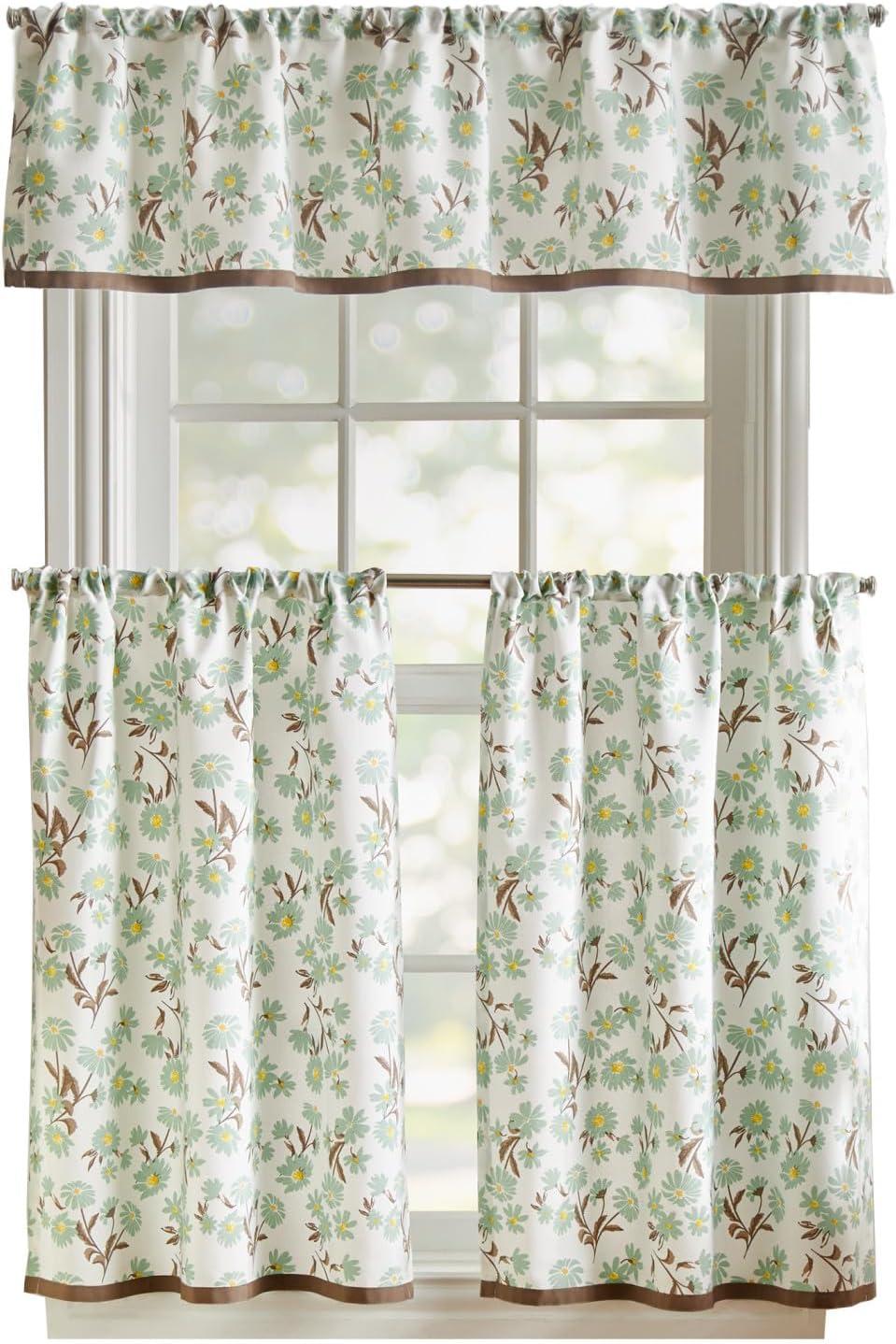 Martha Stewart Chickens 3-Piece Window Curtain Valance and Tiers Set, Multi(Green)