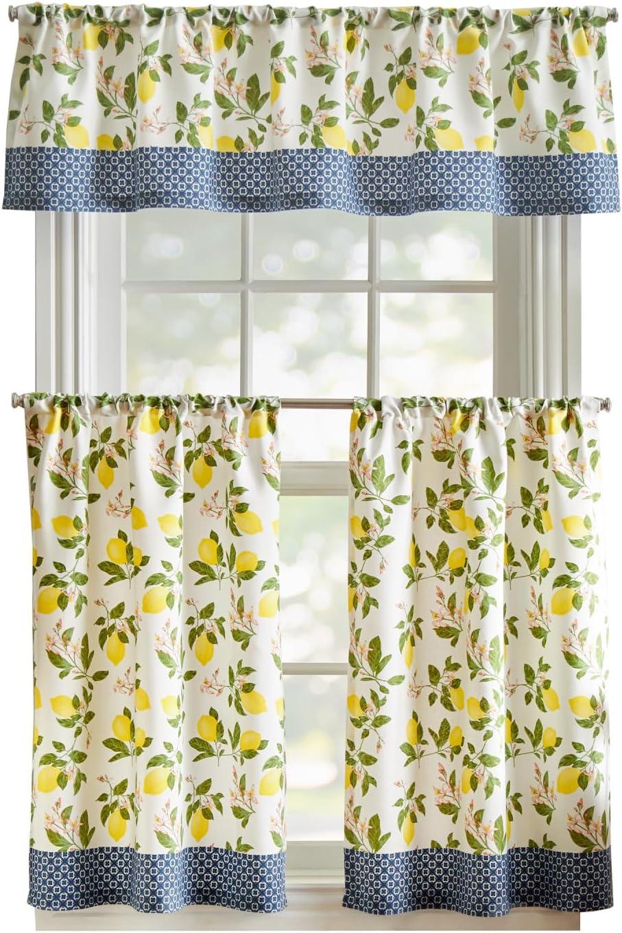 Martha Stewart Chickens 3-Piece Window Curtain Valance and Tiers Set, Multi(Yellow)
