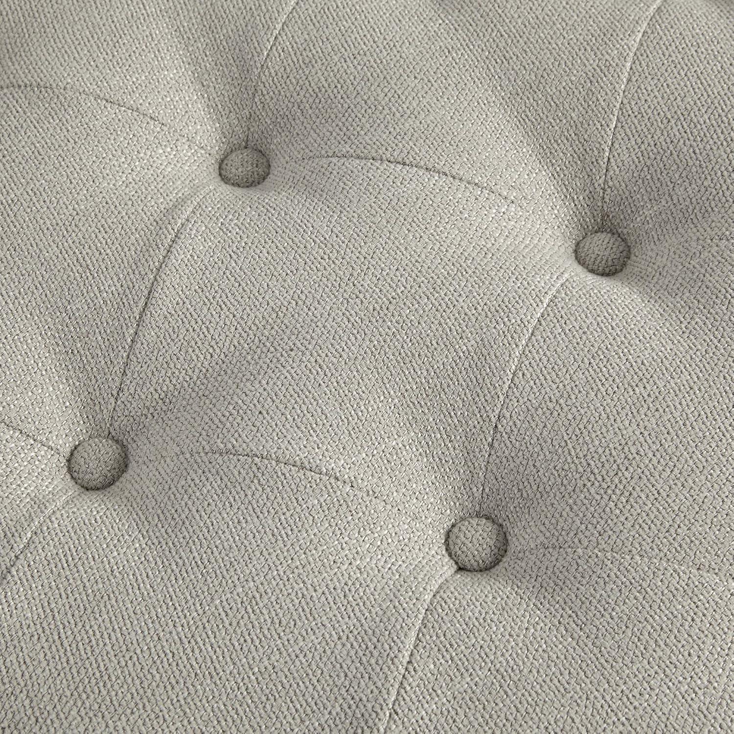 Martha Stewart Clara Coffee Table – Solid Wood Frame, Soft Fabric, Button Tufted, Oval Large Accent Ottoman – Modern Foam Padded Top Footstool Cocktail Living Room Furniture, Linen