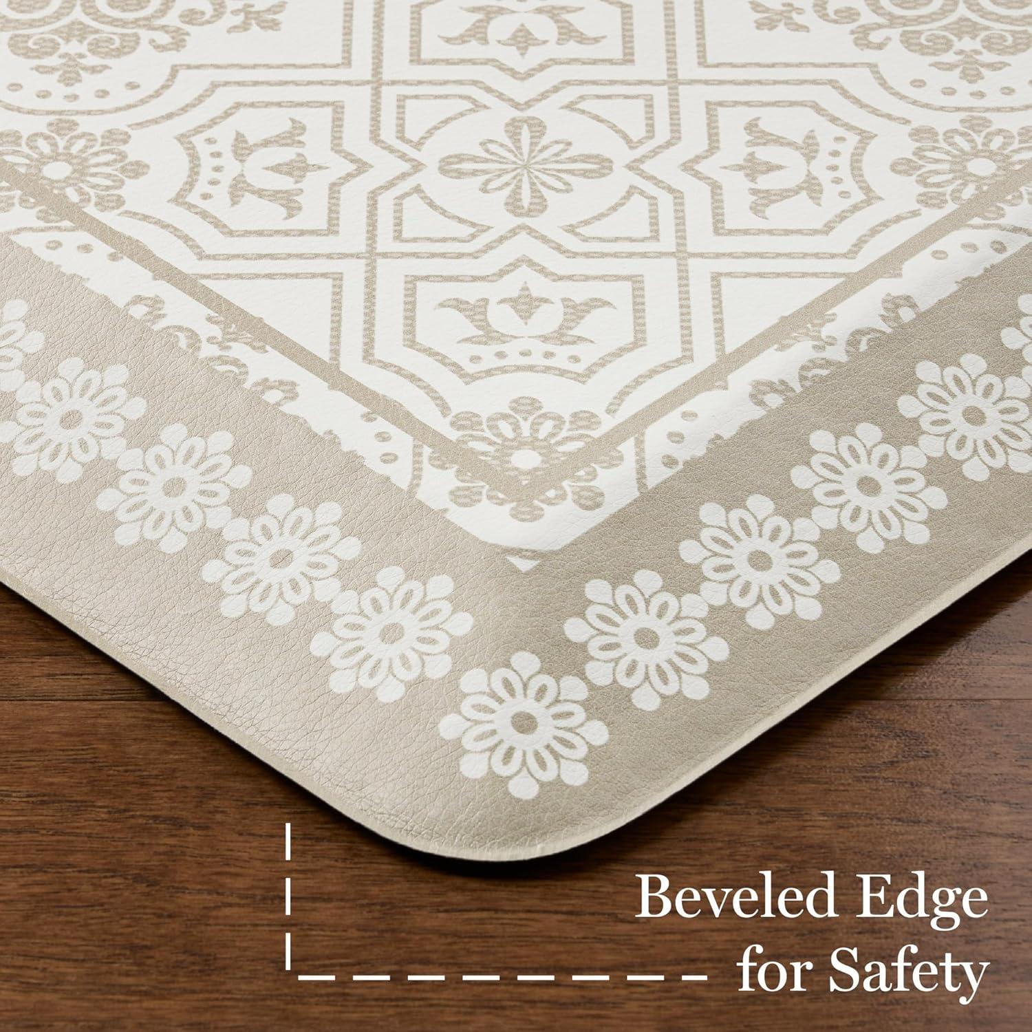 Martha Stewart Comfort Anti Fatigue Strie Medallion Tile Kitchen Mat, Comfort Standing Mat, Non-Slip Backing, Safe Beveled Edge, Grey, 19.6″ x39″(Beige)