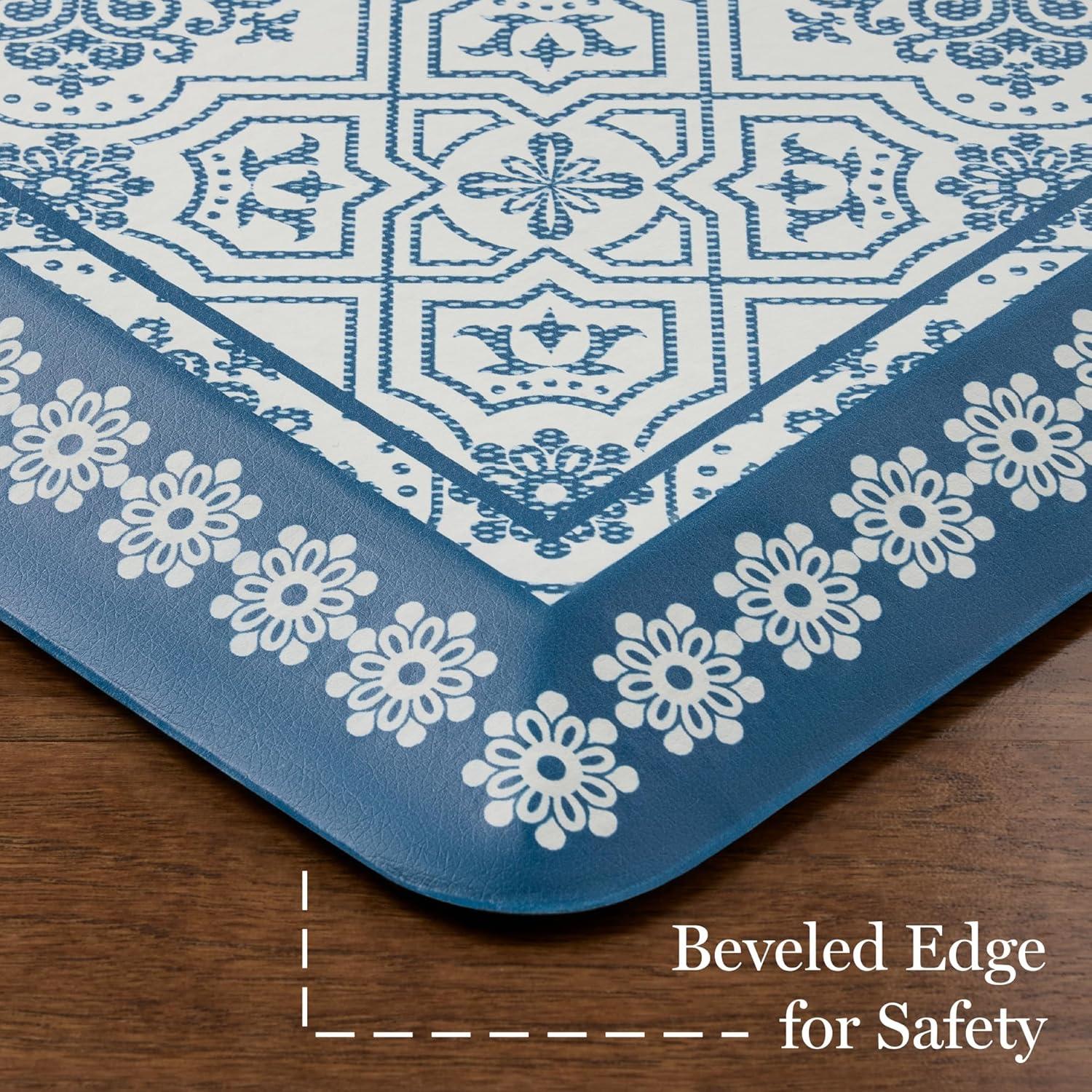 Martha Stewart Comfort Anti Fatigue Strie Medallion Tile Kitchen Mat, Comfort Standing Mat, Non-Slip Backing, Safe Beveled Edge, Grey, 19.6″ x39″(Navy Blue)