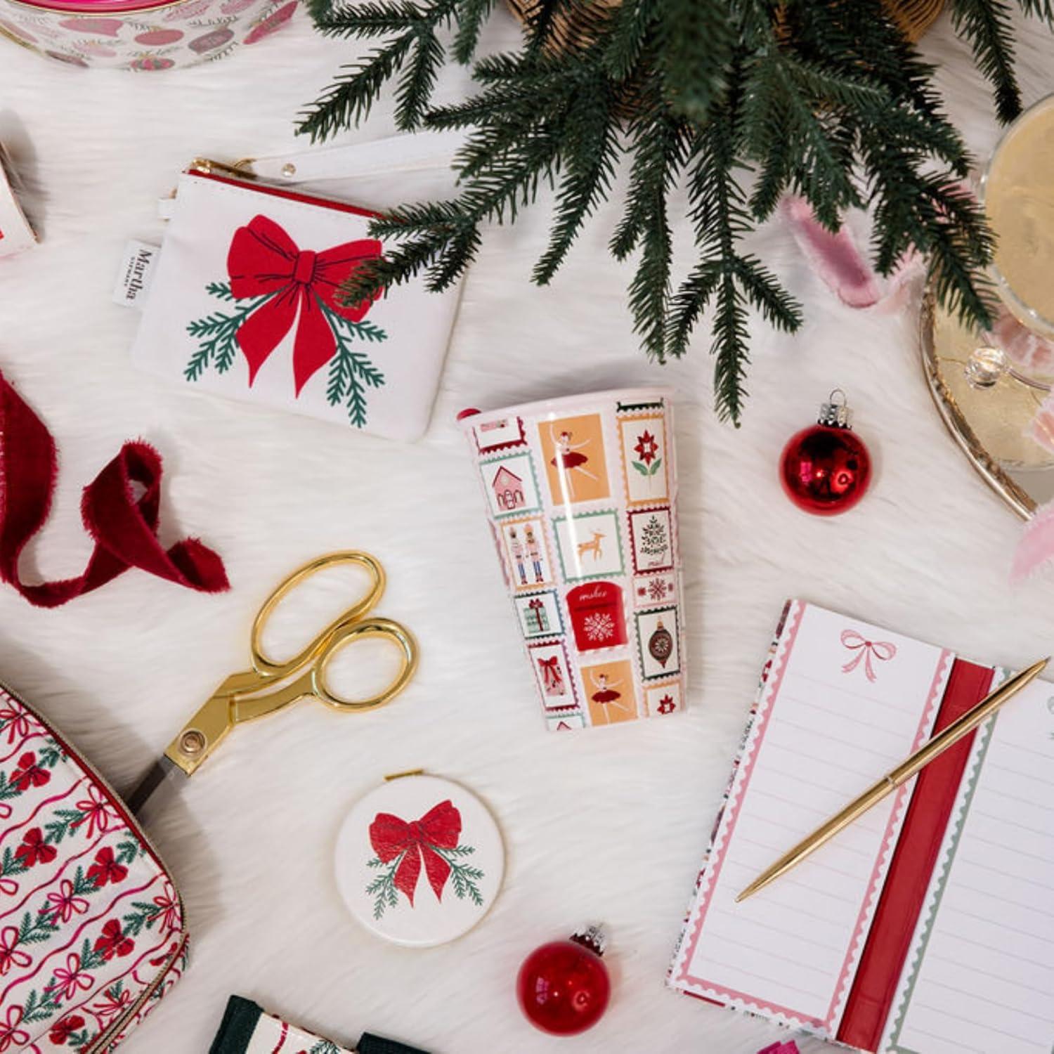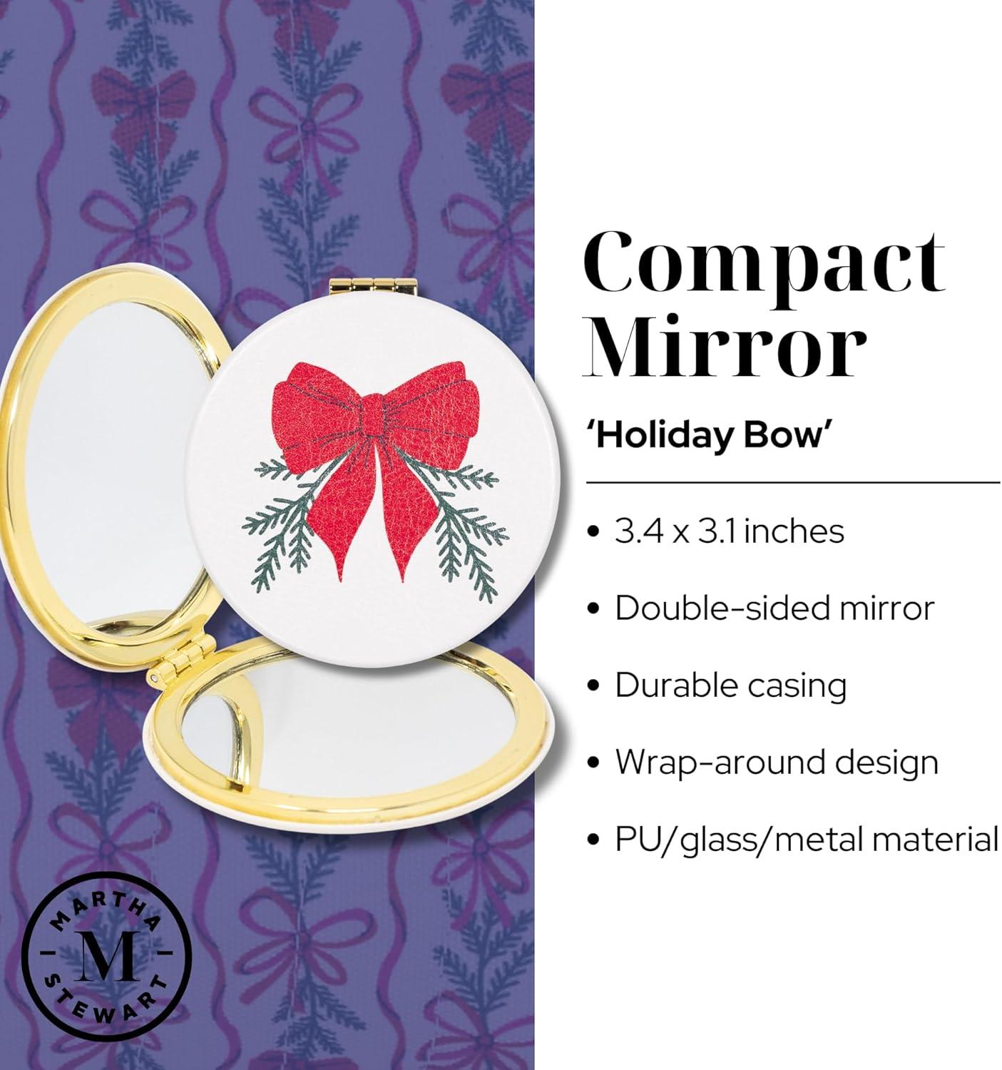 Martha Stewart Compact Mirror, Slim Pocket Mirror with Standard & Magnified Glass, Travel Makeup Mirror for Purse or Stocking Stuffer (Holiday Bow)