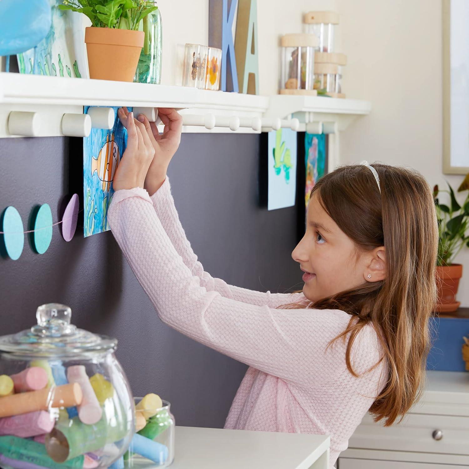 Martha Stewart Crafting Kids’ Art Display – Linen White, Magnetic Children’s Hanging Artwork Display Shelf, Wooden Wall Mount(Creamy White)