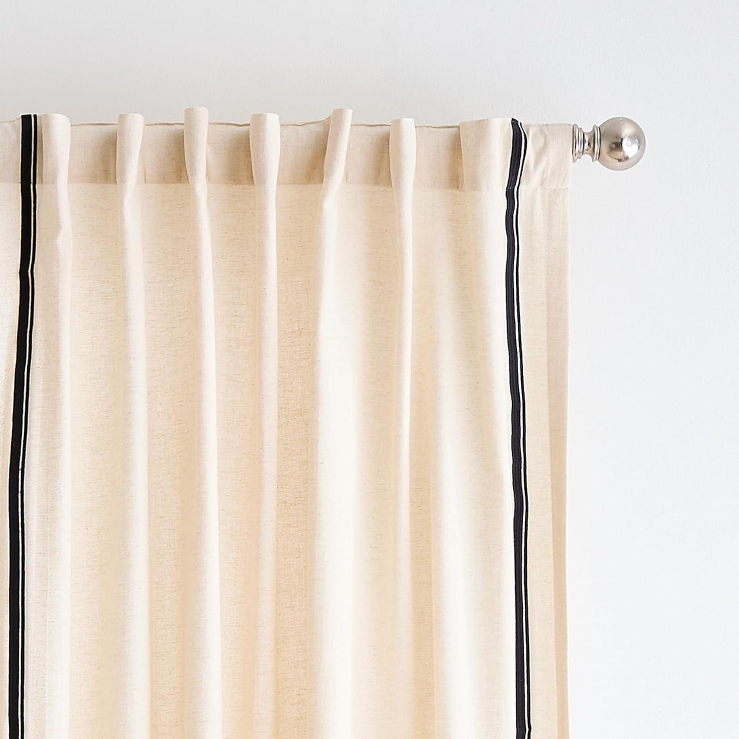Martha Stewart Cream Light Filtering Window Curtains for Living Room – 50″ x 84″ – Set of 2 – Back Tab Panels – Embroidered Stripe Linen(Linen)