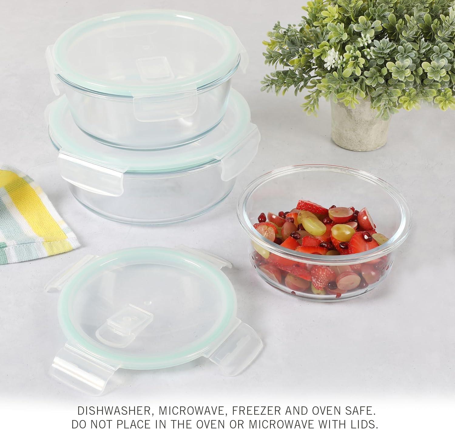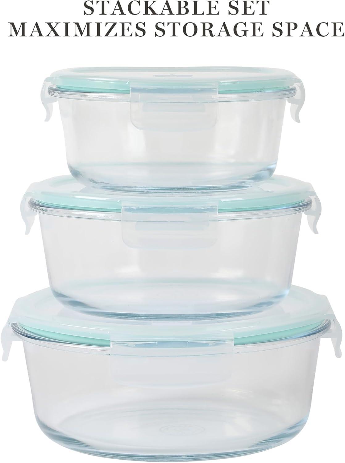 Martha Stewart Denslow 6 Piece 126 oz, 33.3 oz, 16.7 oz Square and Rectangular Food Container Set w/Martha Blue Lid(Round (44oz 32oz 22oz))