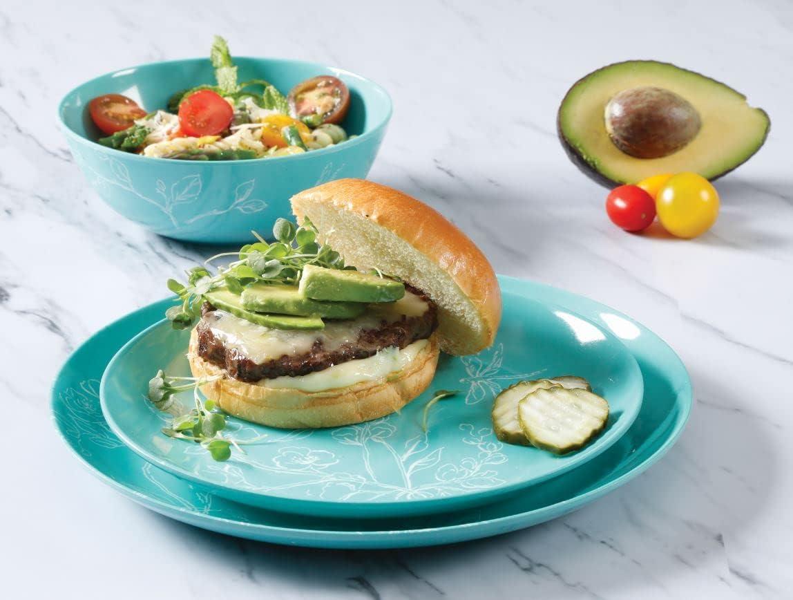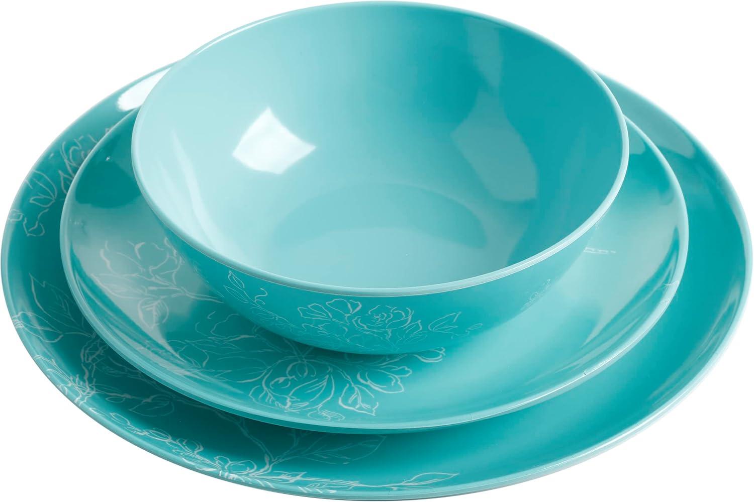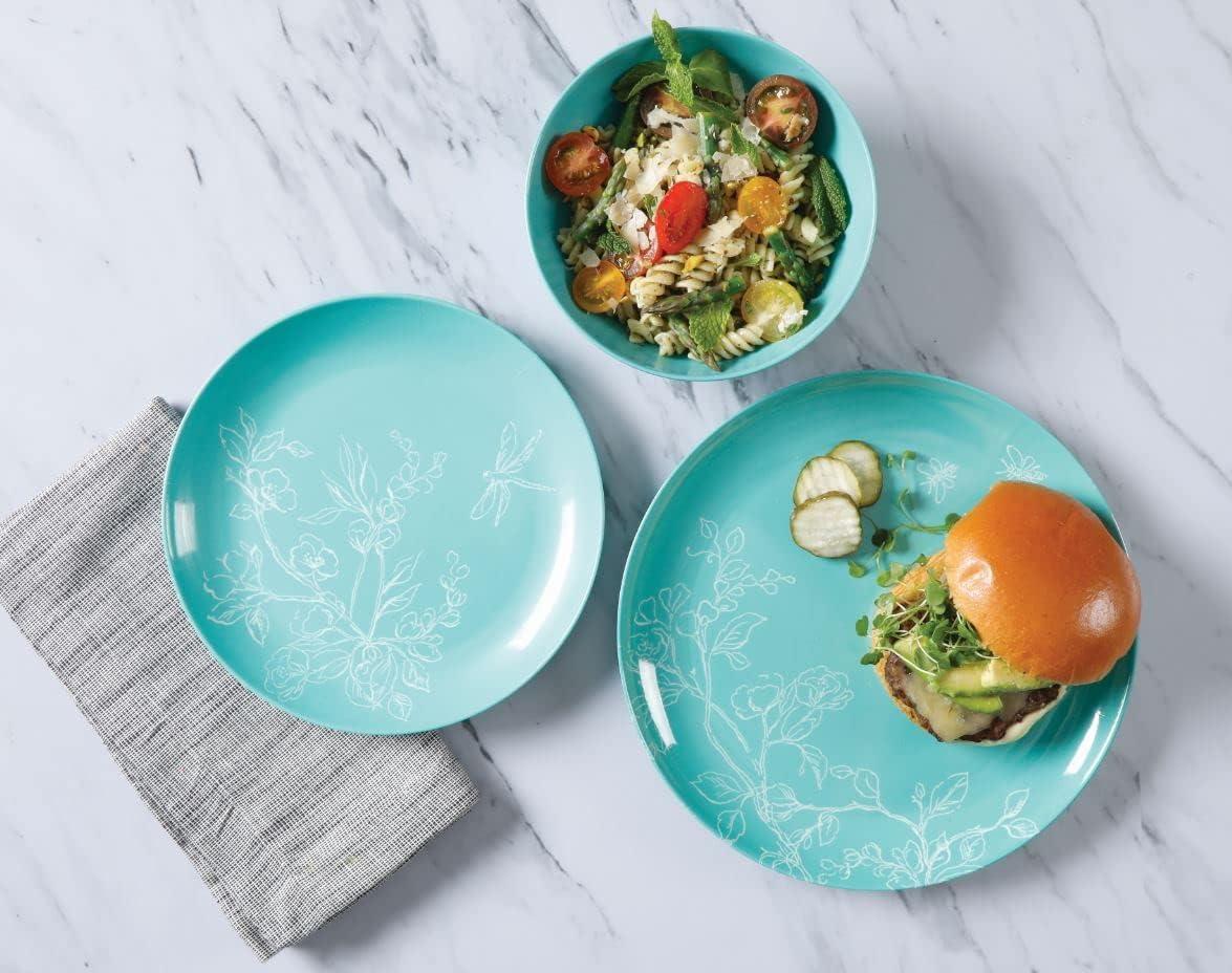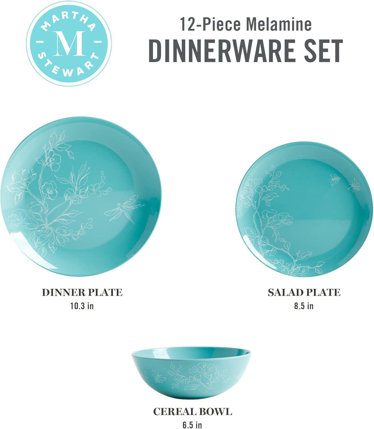 Martha Stewart Dragonfly 12 Piece Decorated Melamine Dinnerware Set – White(Teal)