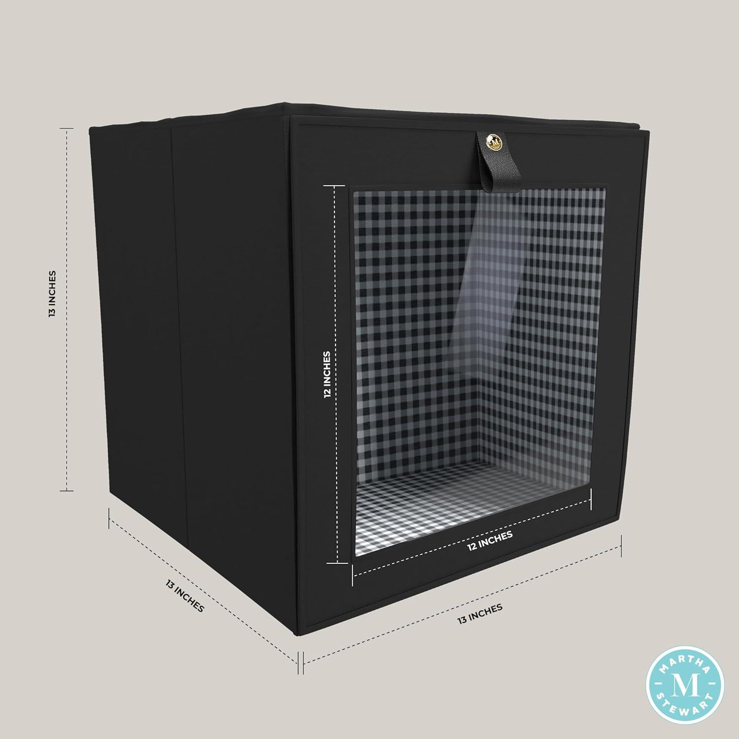 Martha Stewart Essential Collapsible Stackable Decorative Home Storage Cube Organization, Two Piece Set Includes One Front Flap-Lid Storage Organizer and One Craft Cube, Black(Black)