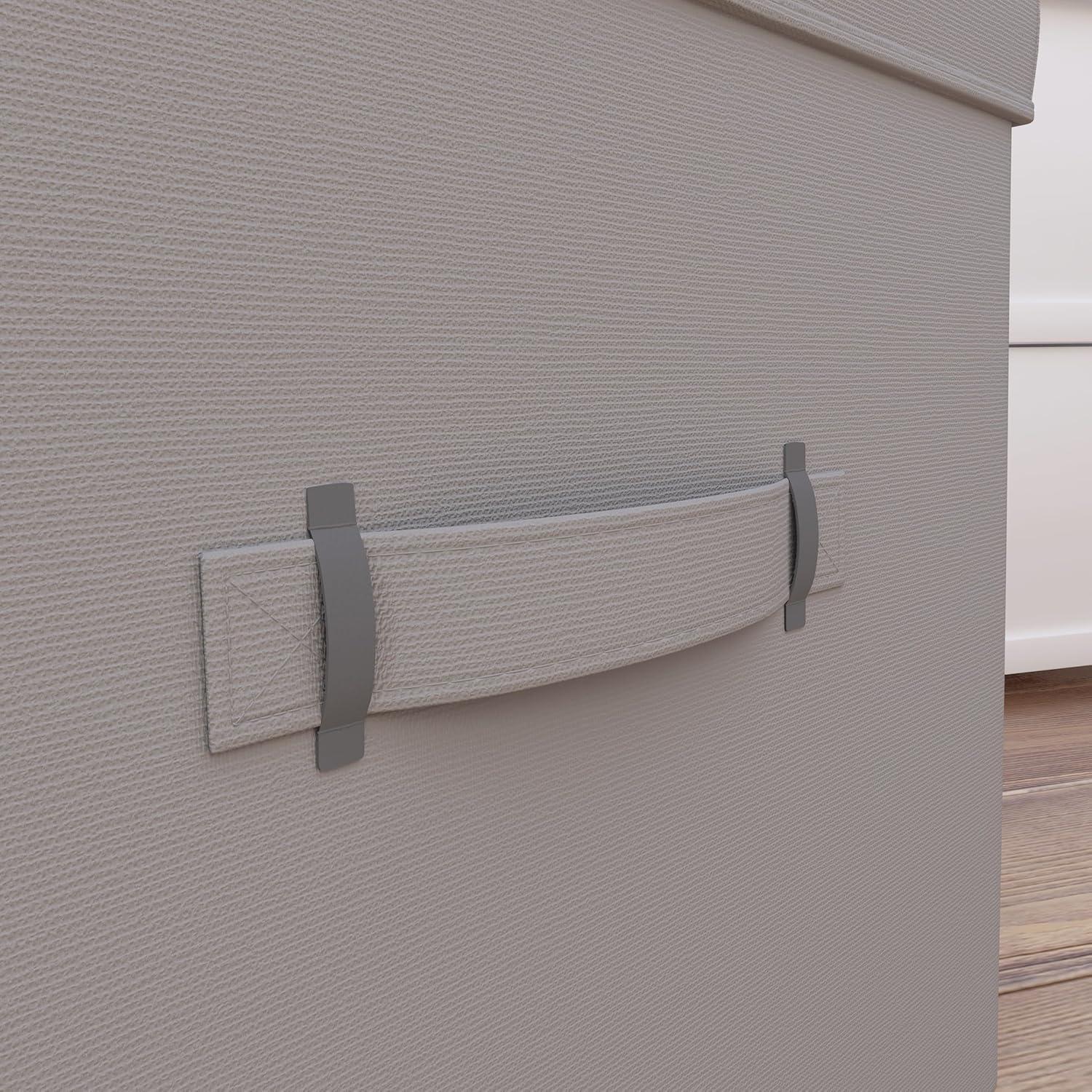 COMPONENTS: This set of nesting boxes feature a cardboard fabric covered frame that can collapse for easy storing. Handles for ease in carrying. Removable lid helps to keep dust and dirt away. Stackable to maximize space.