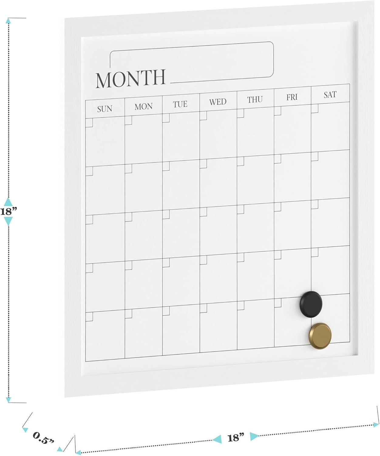 Martha Stewart Everette Magnetic Monthly Calendar Dry Erase Board with Included Dry Erase Marker and 2 Magnets, 18″ x 18″, Light Natural Woodgrain Frame(Black Woodgrain)