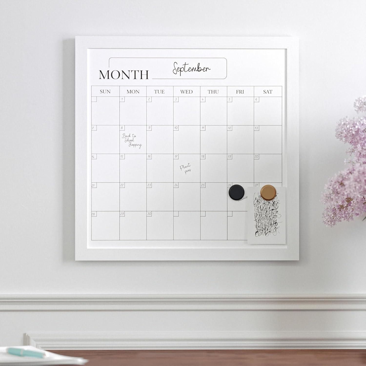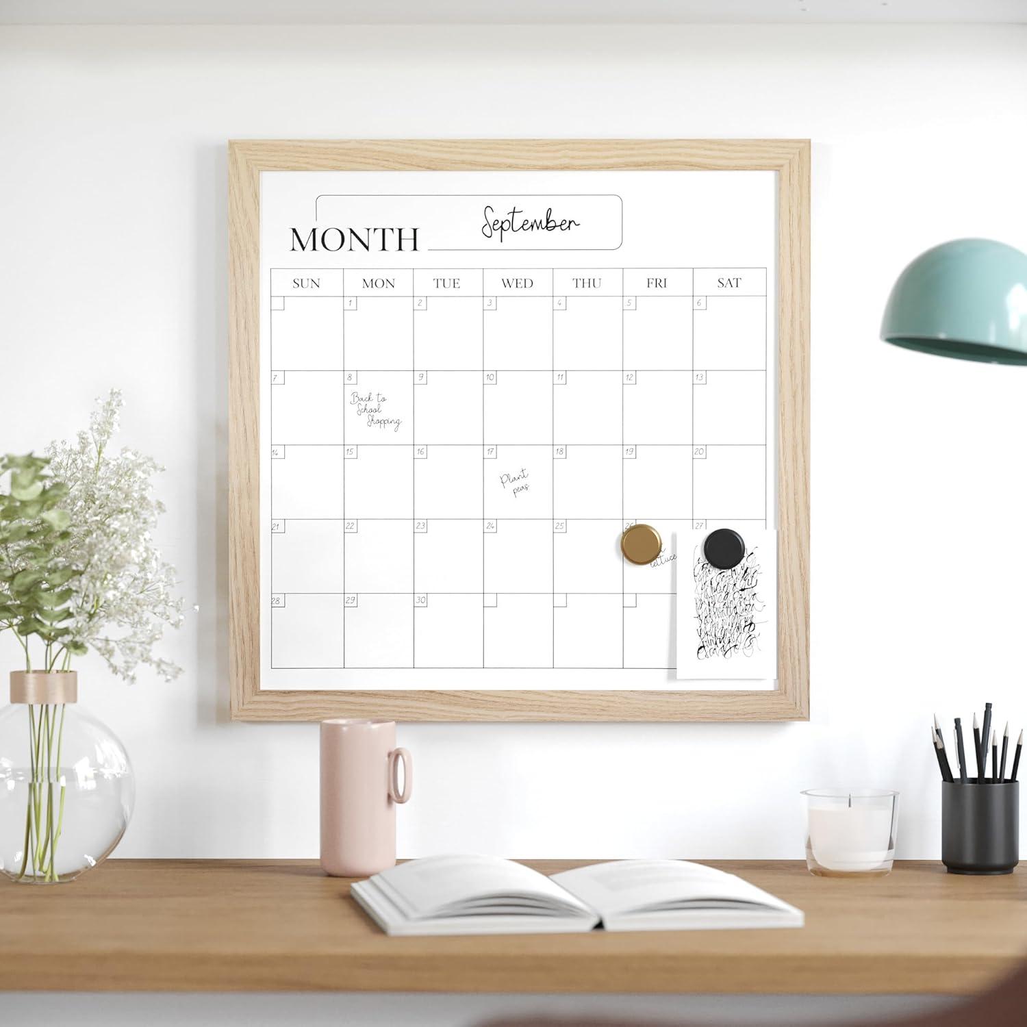 Martha Stewart Everette Magnetic Monthly Calendar Dry Erase Board with Included Dry Erase Marker and 2 Magnets, 18″ x 18″, Light Natural Woodgrain Frame(White Woodgrain)
