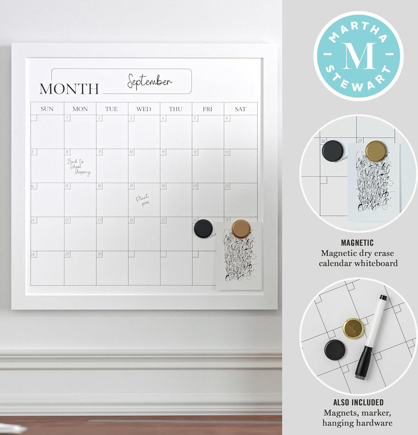 Keep all of your important appointments in one place and conveniently displayed with the Martha Stewart Everette Magnetic Monthly Dry Erase Calendar. Stylish and functional, this reusable calendar enhances any work or living space and its woodgrain frame is available in multiple finishes to suit your decor. Your organized approach to living begins with this tasteful task manager which comes with mounting hardware, two magnets, and a dry erase marker. When the month is complete, simply wipe clean with a dry cloth and repopulate the dates for the new month to maintain your personal and family schedules year after year.