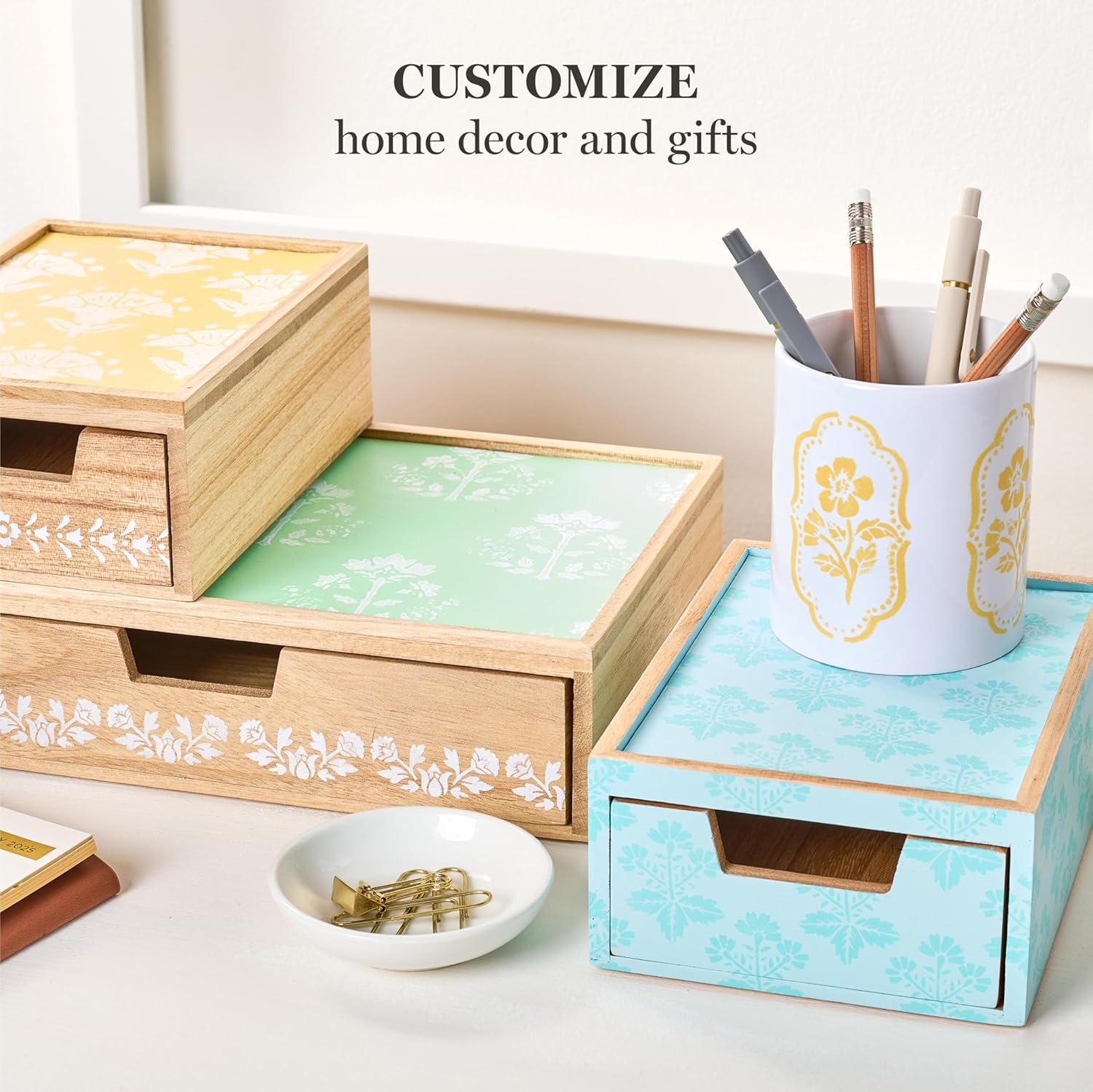 The Martha Stewart 13-Piece Floral and Fauna Stencil, Stamp, and Tools Kit has everything you need to make your designs stand out with precision and ease. This all-in-one kit is designed specifically for creating beautiful painted designs, with reusable adhesive stencils, laser-cut foam stamps, and six essential tools. The adhesive stencils help eliminate paint bleed, ensuring your patterns come out crisp and precise every time. The laser-cut foam stamps allow you to add stunning, detailed impressions effortlessly. With tools perfect for base coating, blending, and adding fine details, you’ll have everything you need to bring your creations to life. Just pair with Martha Stewart’s Acrylic Craft Paint, and you’re ready to craft beautiful, professional-quality projects!