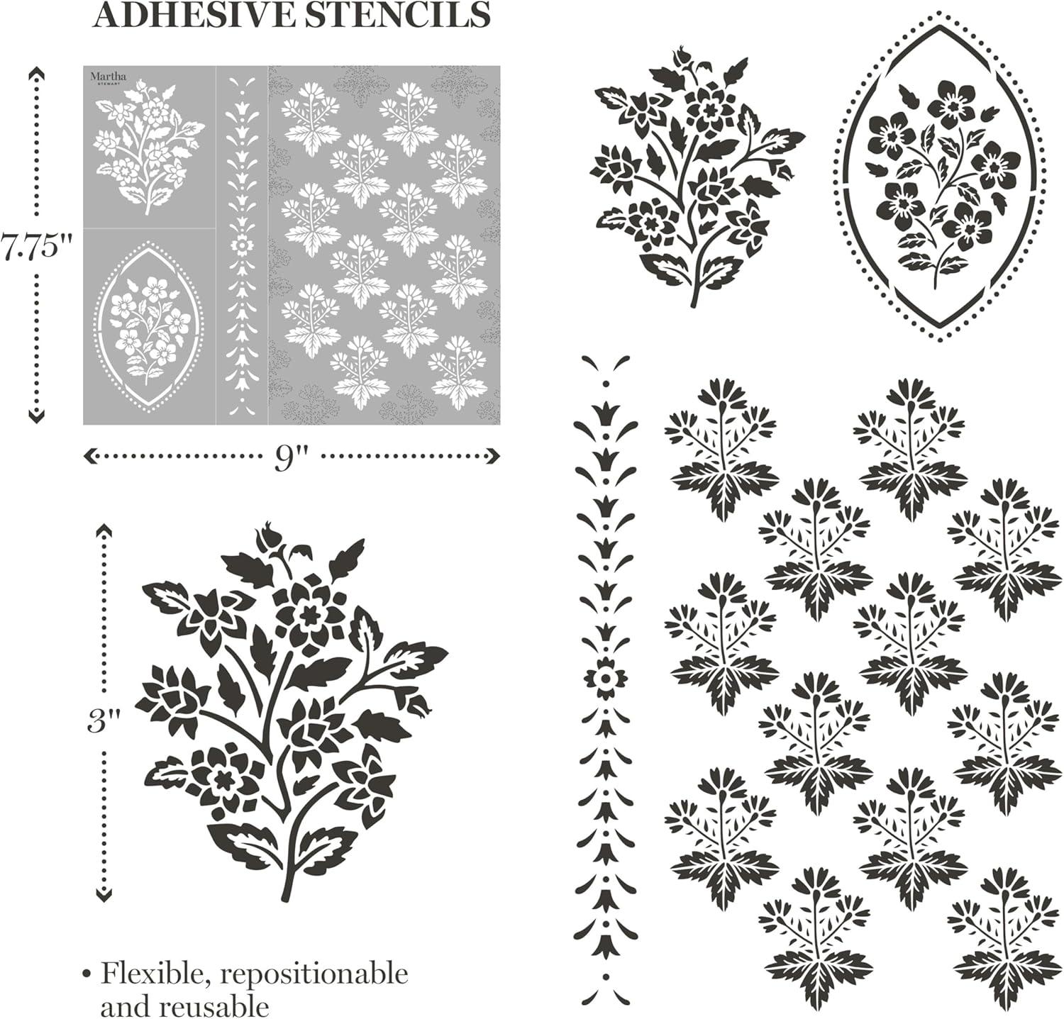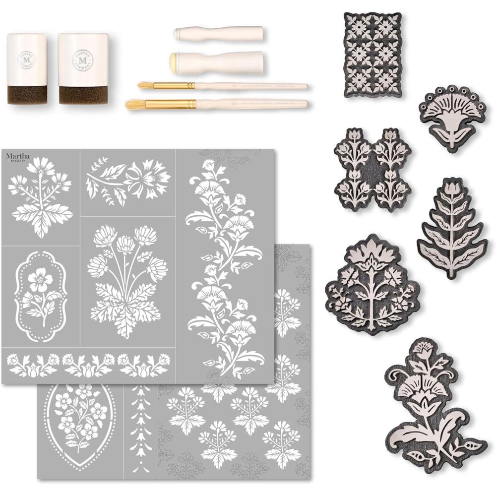 Martha Stewart, Flora and Fauna Stencils, Stamps, and Tools Kit, 13 pc(Vintage Florals)