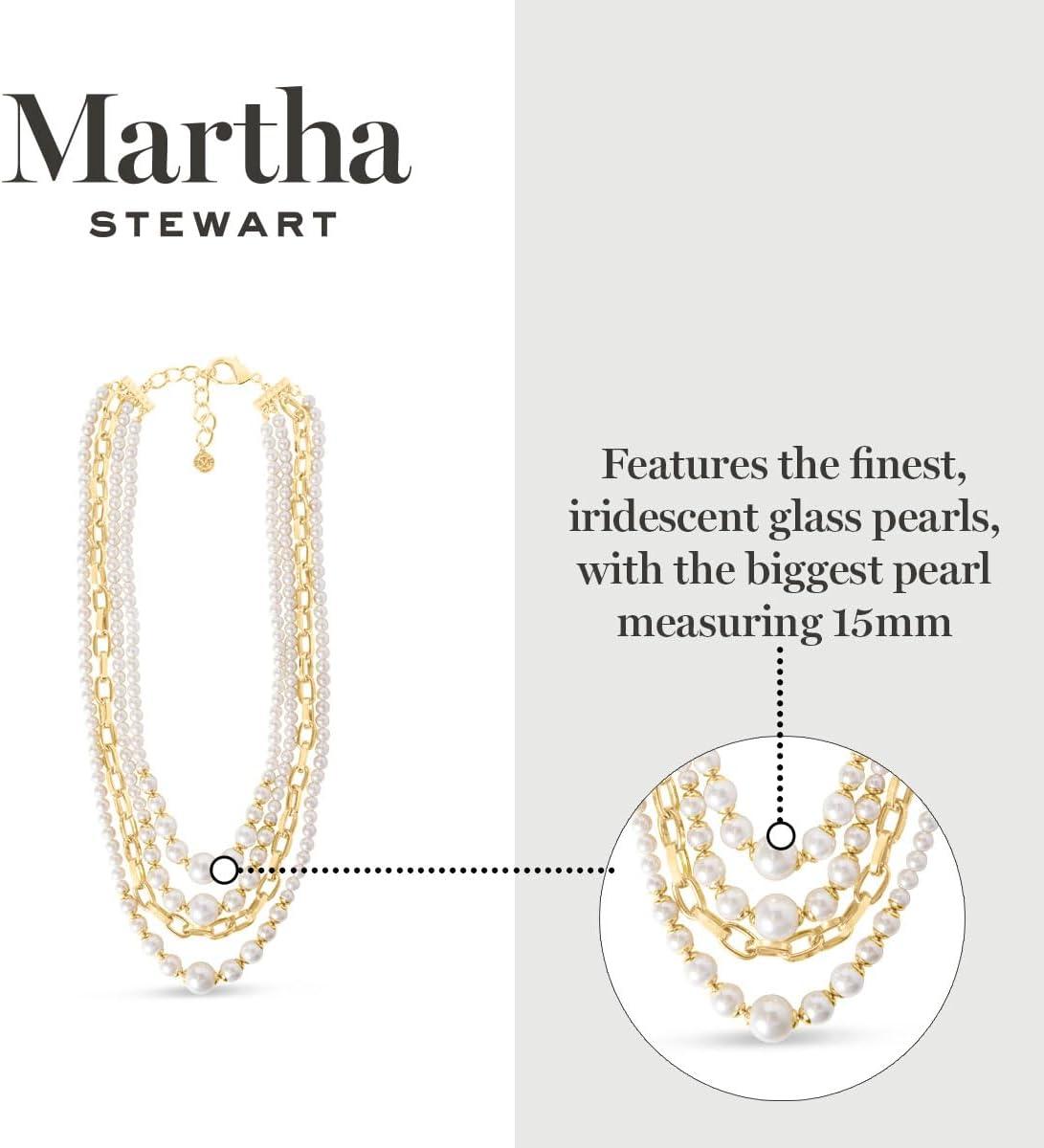 Martha Stewart Four Strand Pearl and Chain Necklace In Gold, Long, For Women