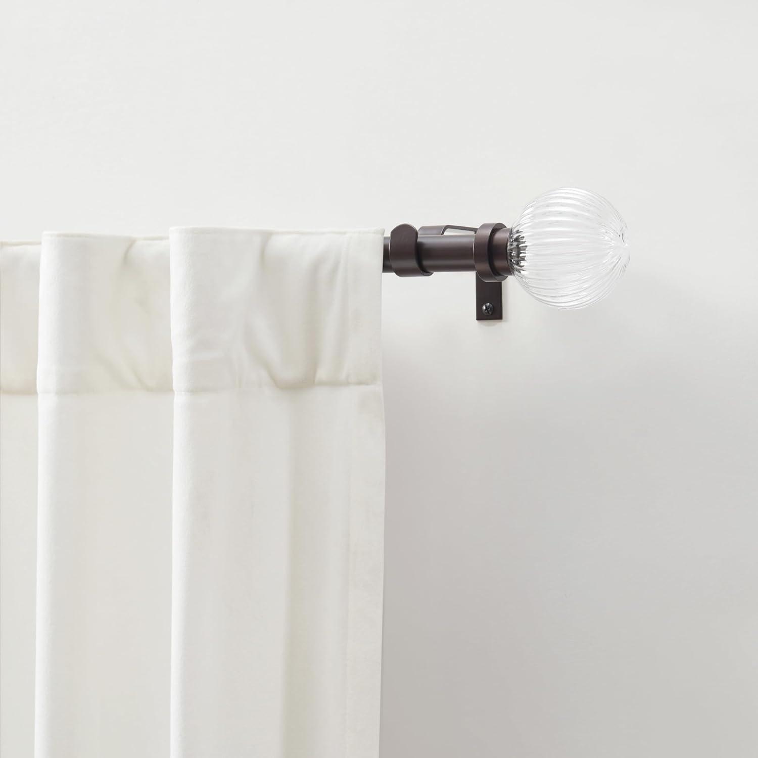 OIL RUBBED BRONZE Single curtain rod has an oil rubbed bronze black finish. With its sleek and classic look, this curtain rod accessory will coordinate with an array of home decor styles. Glass and resin ball finish for modern elegance