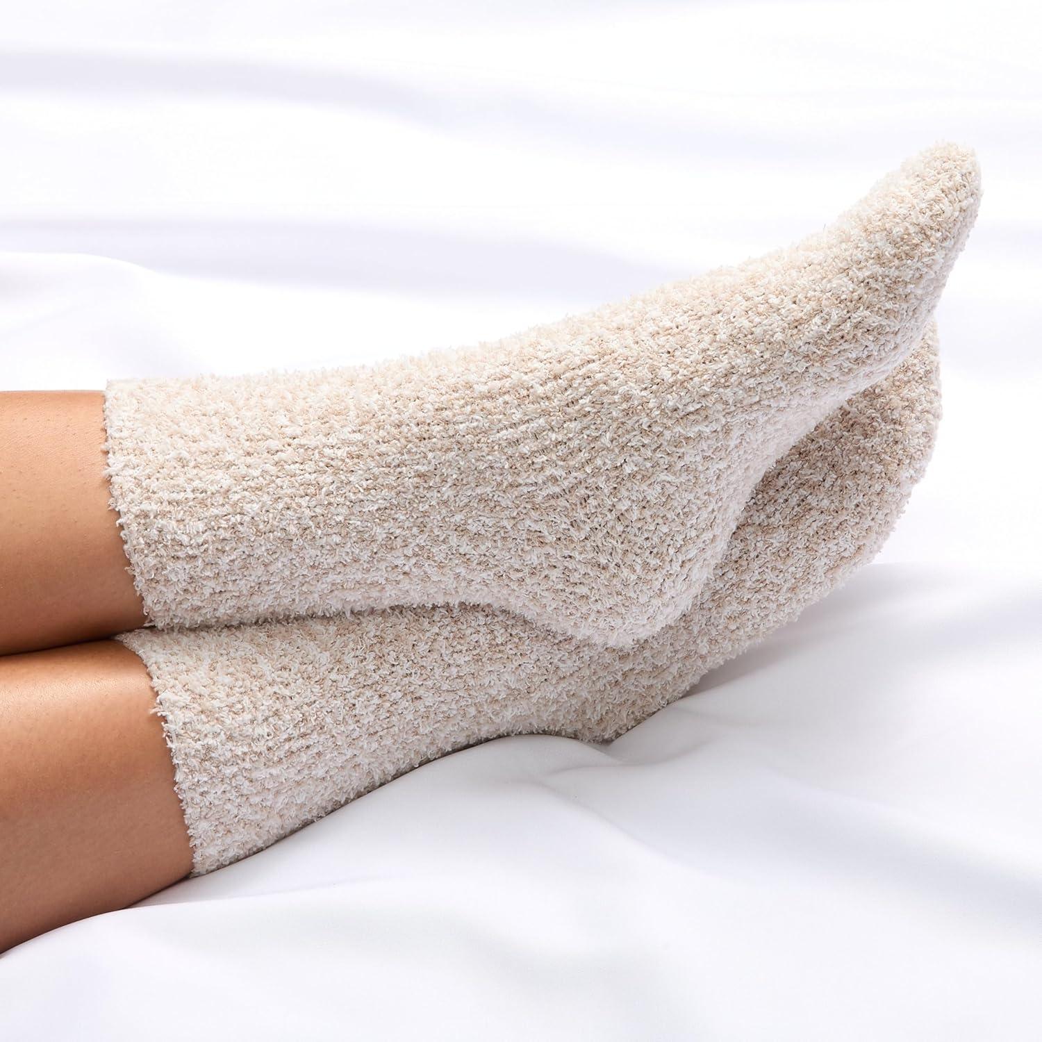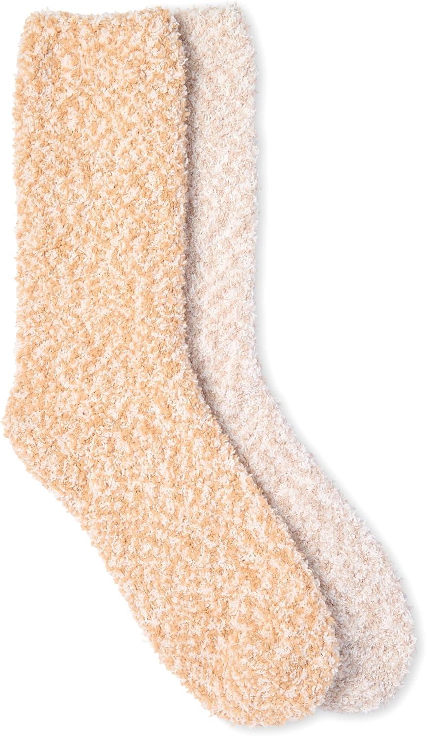 Martha Stewart Fuzzy Socks For Women – 2 Pairs – Warm And Cozy For Winter, Stocking Stuffer(Tan/Silver Grey)
