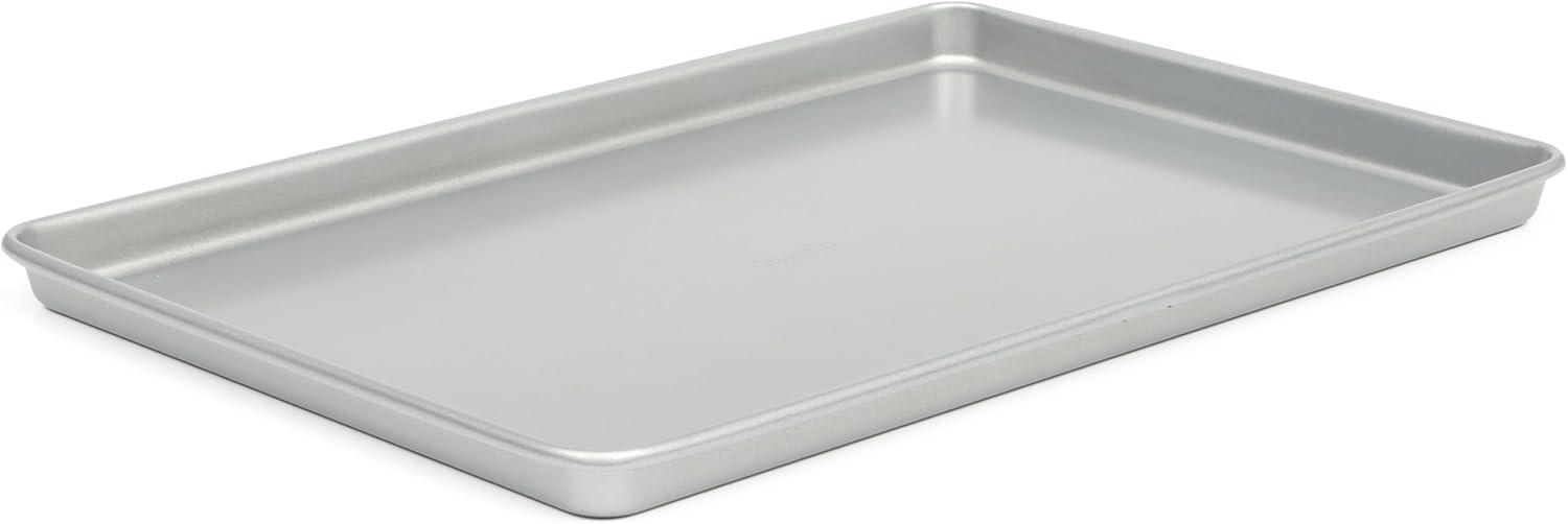 WIDE SURFACE AREA: A baking sheet as big as a traditional jelly roll pan, this pan allows roasting tender-crisp vegetables or baking fish and chicken. Suitable for baking or cooking sides, desserts or sheet-pan dinners, this pan is ideal for most standard home ovens.