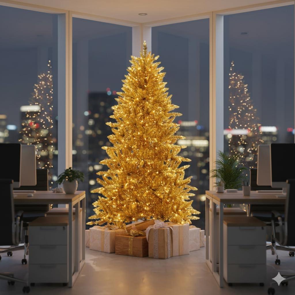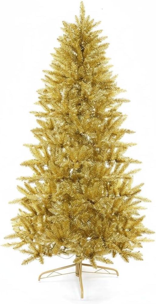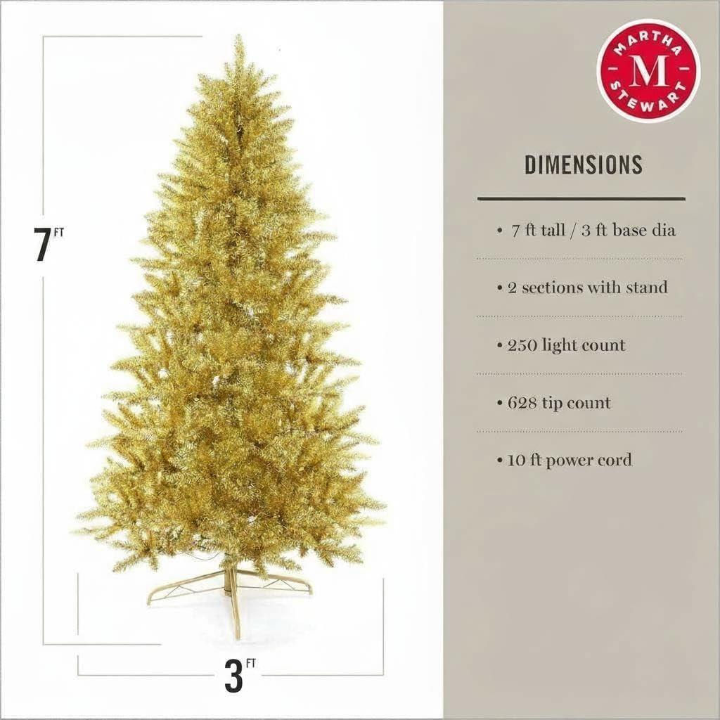 MARTHA STEWART Gold Tinsel Pre-Lit Artificial Christmas Tree, 7 Feet, Clear White Lights (BTIPI1)(Gold)