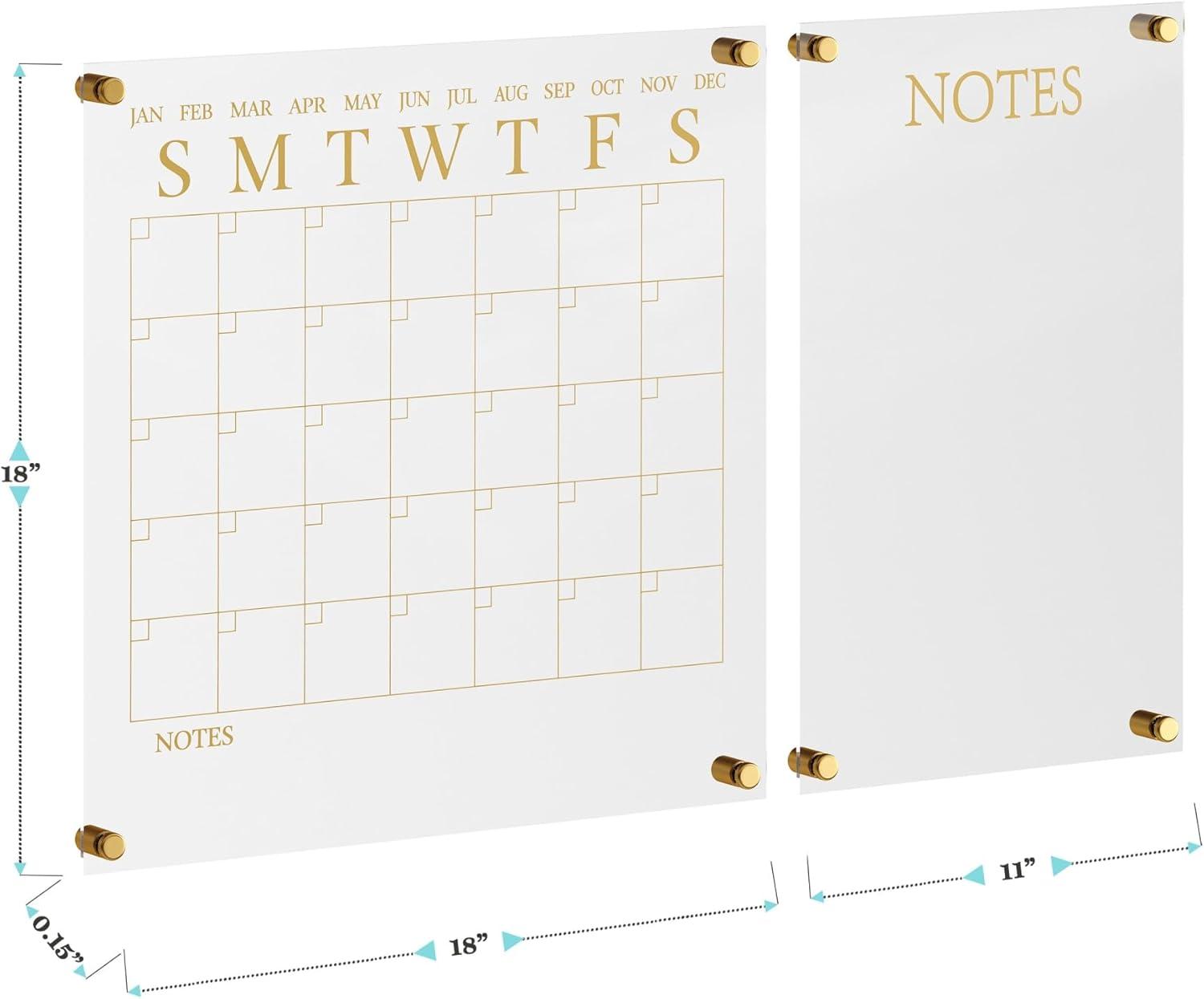 Martha Stewart Grayson Acrylic Dry Erase Wall Calendar with Dry Erase Marker, 14″ Square, Clear with Gold Print(Clear/Gold)