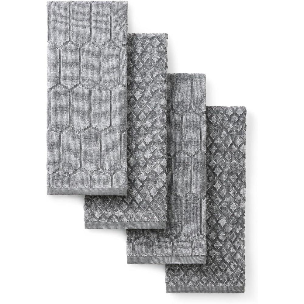 Martha Stewart Honeycomb Chambray Textured Kitchen Towel 4-Pack Set, 100% Cotton with Absorbent Terrycloth, Decorative Kitchen Towels, Mint Green, 16″x28″(Grey)