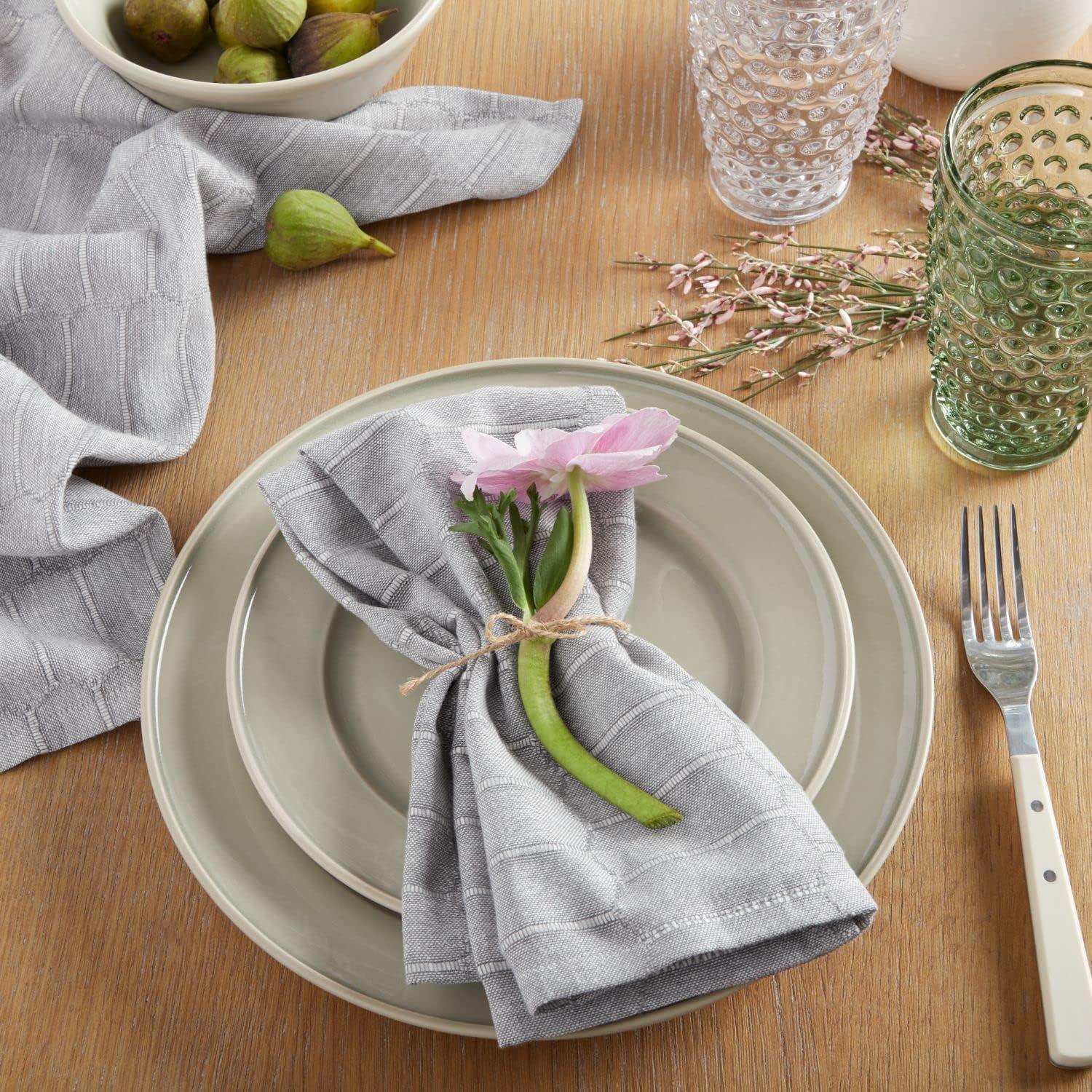Martha Stewart Honeycomb Modern Farmhouse Napkin 4-Pack Set, Beige, 19″x19″(Charcoal Grey)