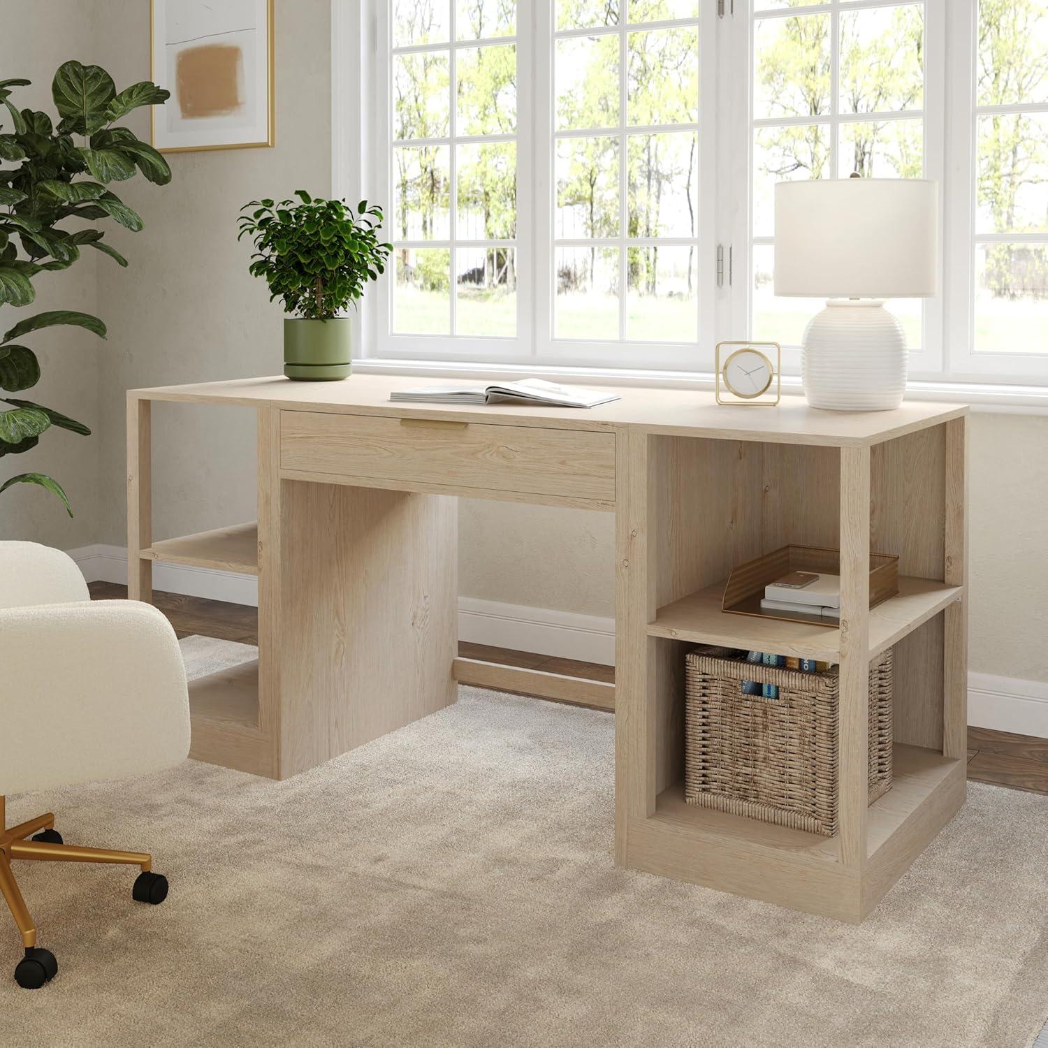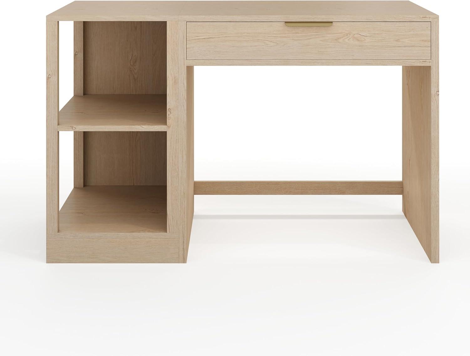 Martha Stewart Kayden Home Office Modular Desk with Drawer and Dual 2 Tier Shelves in Black with Oil Rubbed Bronze Hardware(Light Natural)