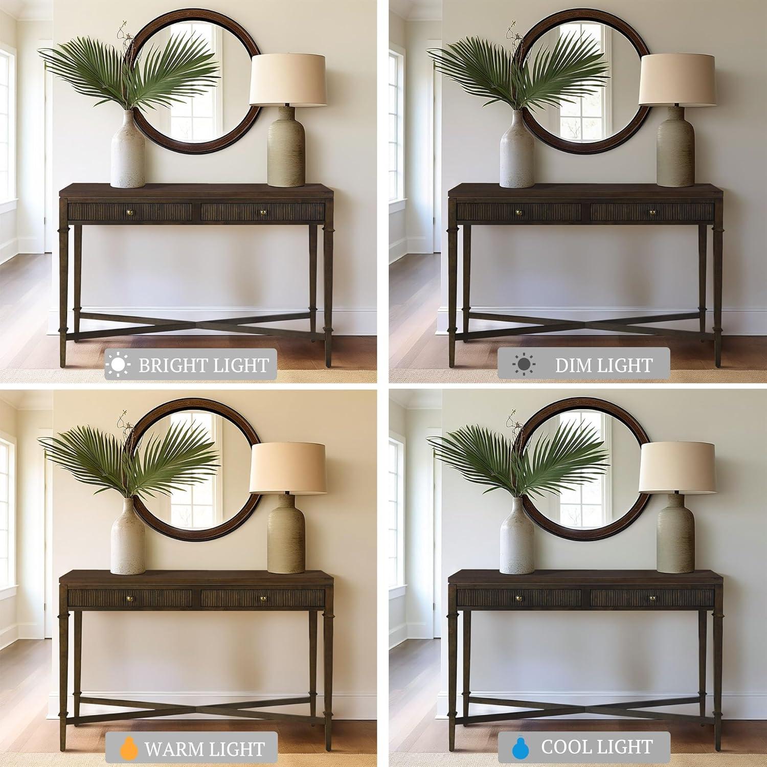 Martha Stewart Kena Hall Console Entryway with Storage Fluted Drawers, Solid Wood Legs Cottage Inspired Sofa Table, Antique Brass Knobs, Coastal Living Room Furniture, 47.5″ Wide, Brown(47.5″)
