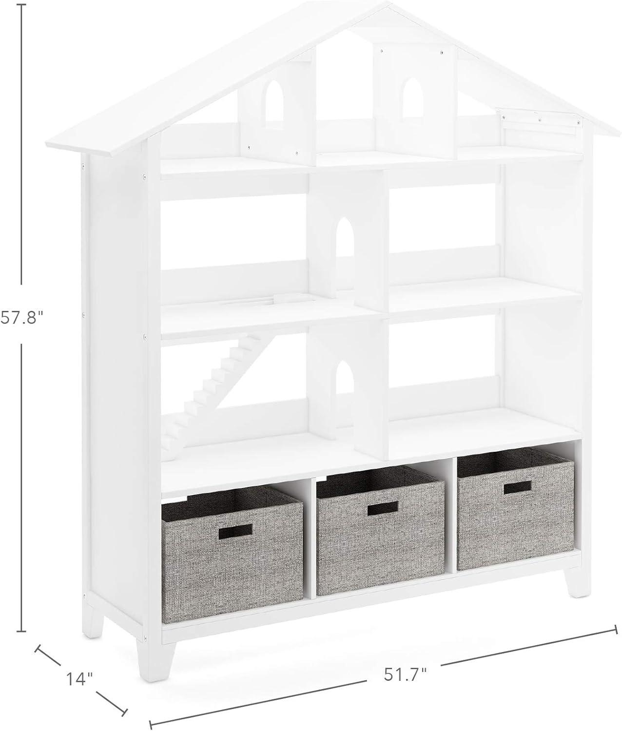Martha Stewart Kids’ Deluxe Dollhouse Bookcase – Gray: Kids Wooden Bookshelf and Tall Book Shelf Organizer with Toy Storage | Toddler Book Rack | Dollhouse Bookshelf | Playroom or Bedroom Storage(Linen White)