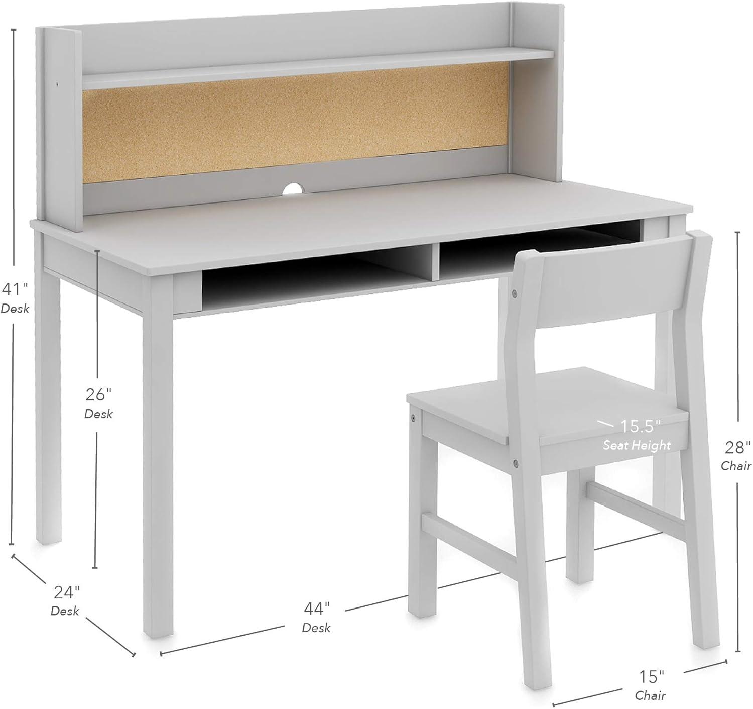 Martha Stewart Kids’ Desk with Hutch and Chair by Guidecraft – Creamy White: Wooden Study Table with Storage and Corkboard | Bedroom Furniture Set, Desk and Chair Set Ages 5-12(Grey)