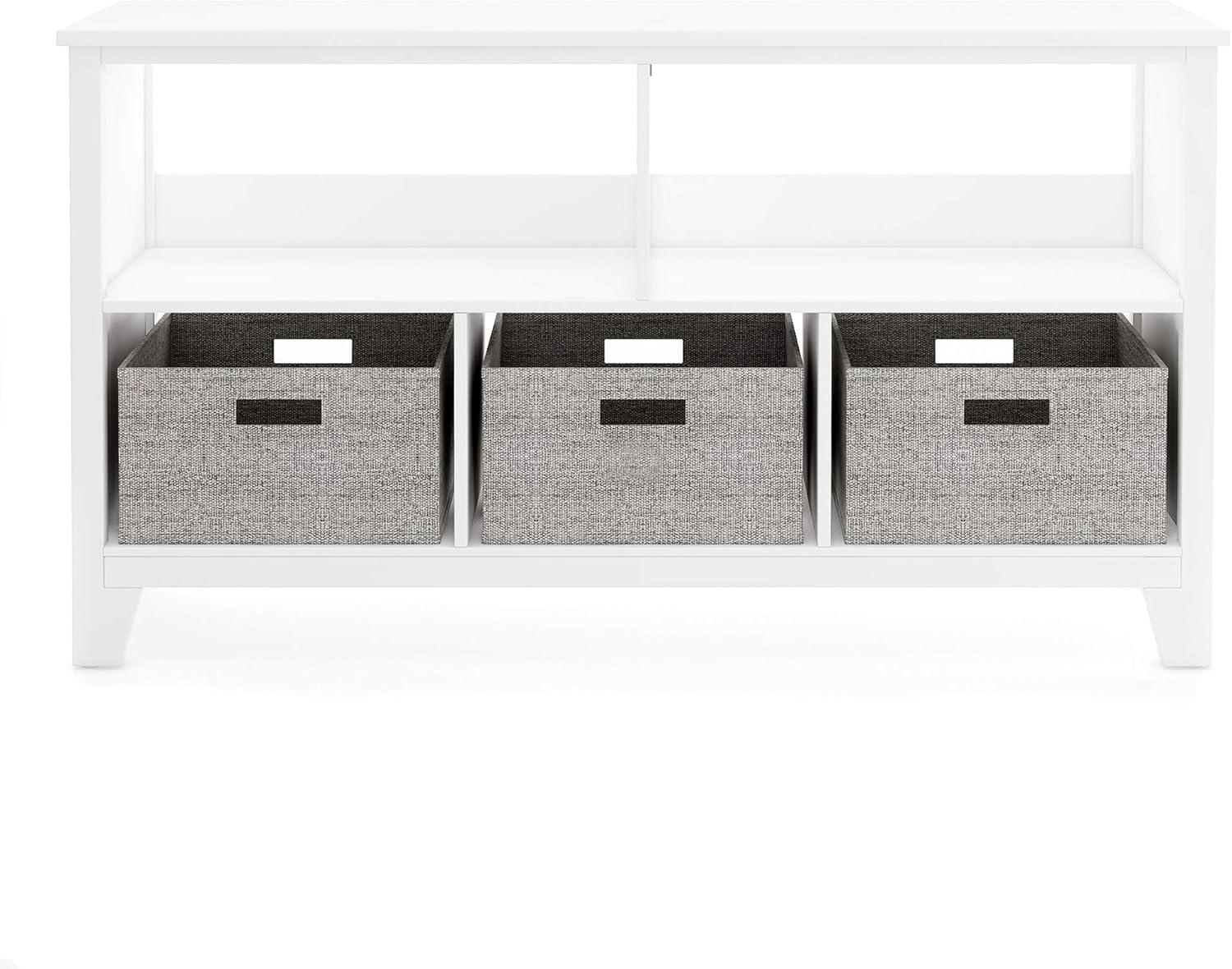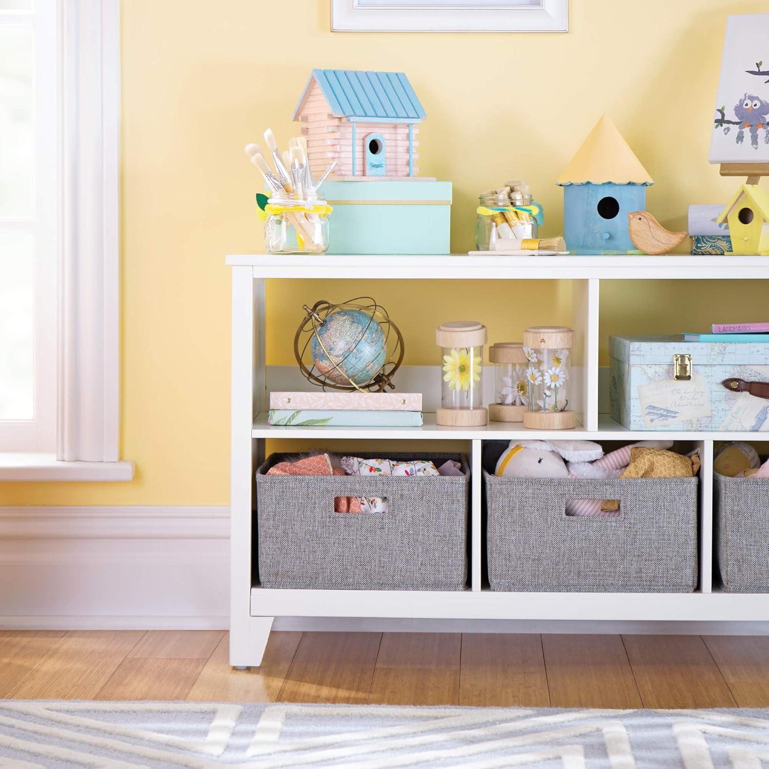 Martha Stewart Kids’ Low Bookcase (Gray) – 24 Inch Wooden Storage Organizer Cubby with Fabric Bins for Playroom and Bedroom(Linen White)
