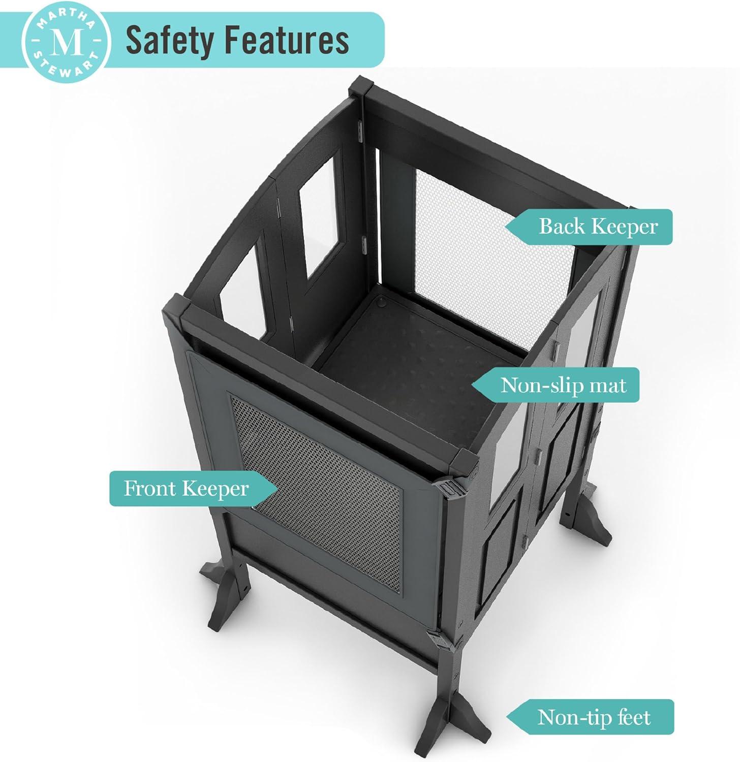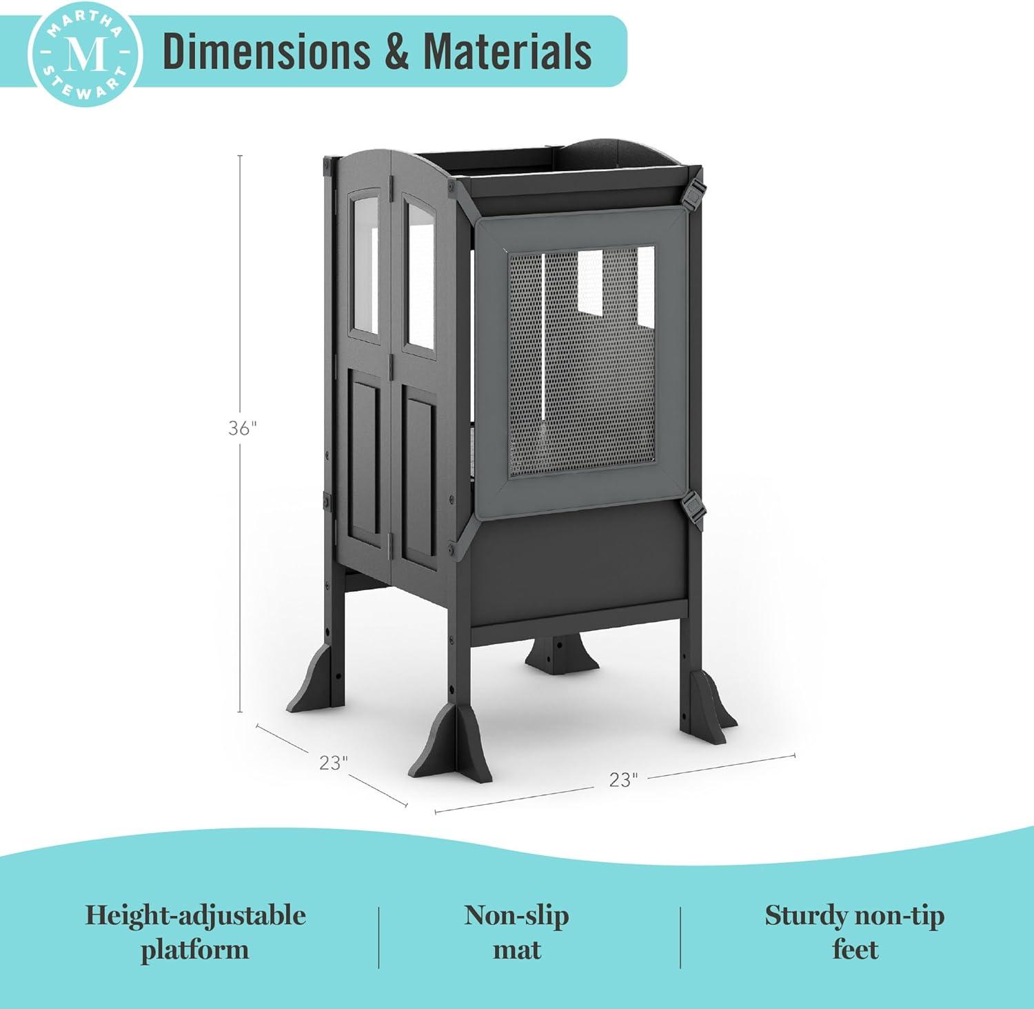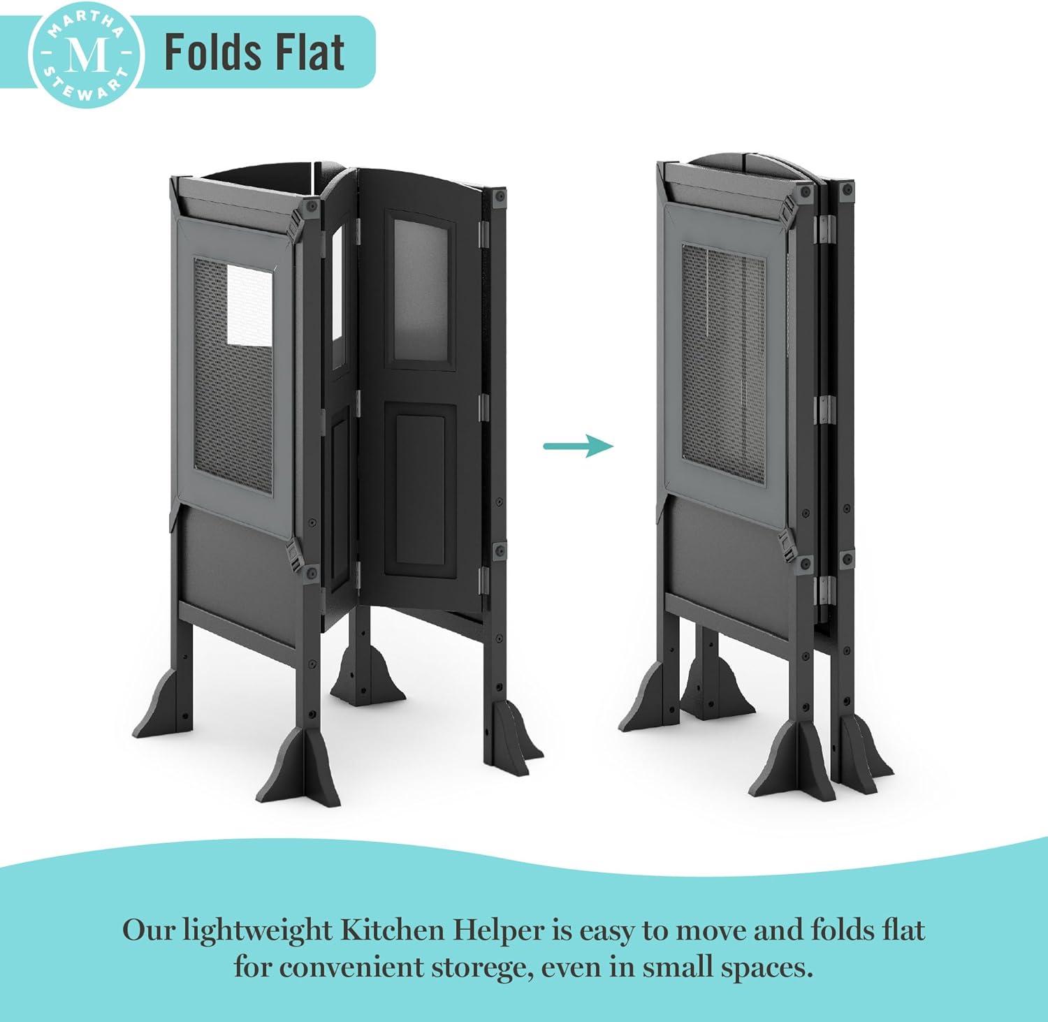 Martha Stewart Kitchen Helper ® Toddler Tower – Charcoal: Kids Folding Wood Kitchen Platform, Adjustable Height Step Stool for Toddlers | Little Kids Learning Furniture(Charcoal)