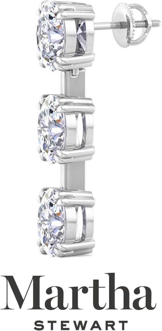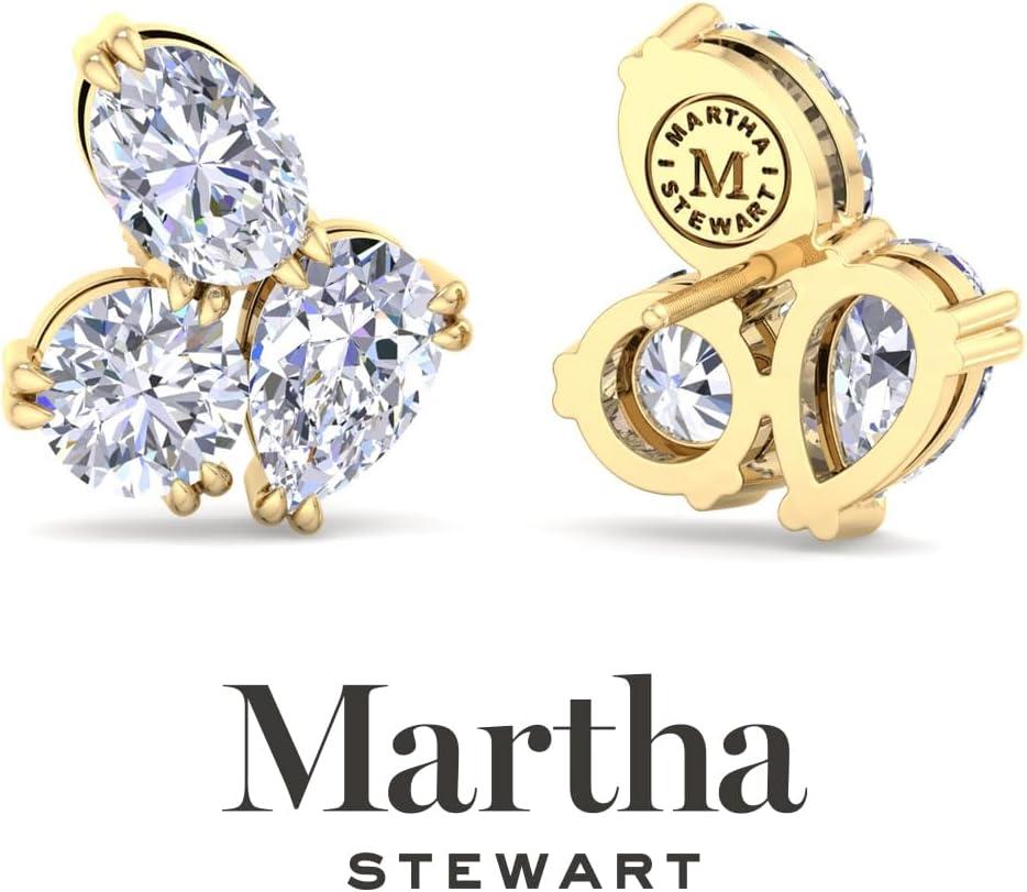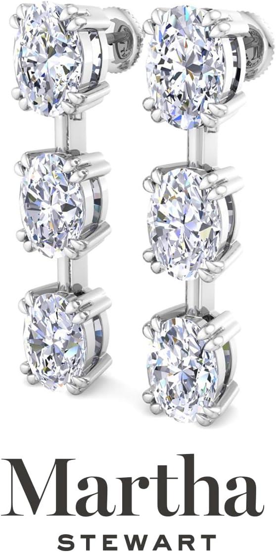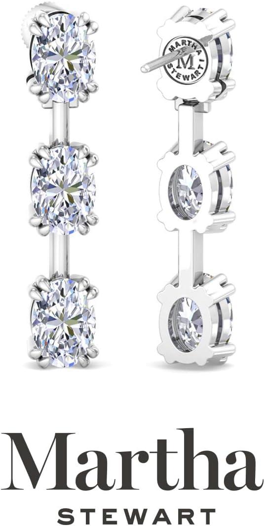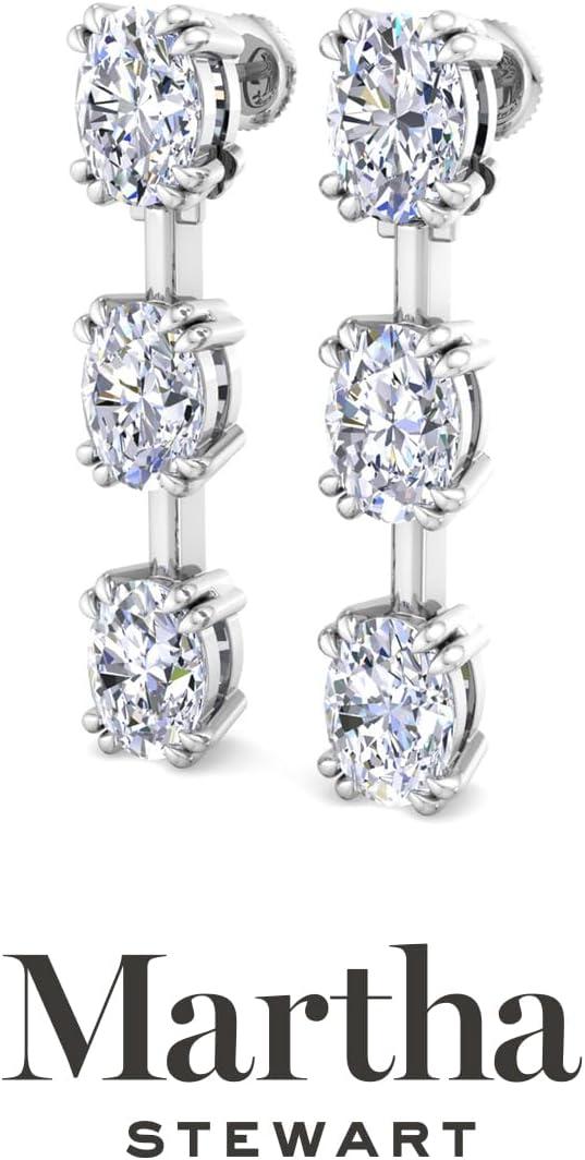 Showcasing class, style and timeless sophistication, the Martha Stewart fine jewelry collection is here to be celebrated. These Martha Stewart lab grown diamond earrings feature six oval shape lab grown diamonds in G-H color, VS clarity. Total carat weight is 3 or 5 carats. These earrings are available in 14 karat white and yellow gold and have post with friction backs. These earrings are set in the signature Martha Stewart double-prong setting and dangle down over 1 inch! Whether worn for a special event or to enhance everyday elegance, these earrings are sure to become cherished heirlooms. Martha Stewart’s attention to detail and dedication to quality shine through in every piece, making this collection a celebration of refined craftsmanship and timeless beauty.