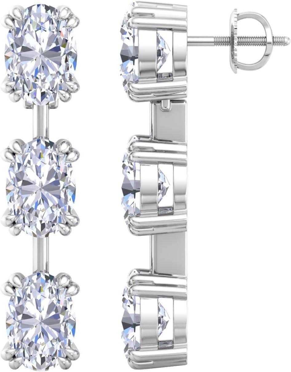 Martha Stewart Lab Grown Diamond Earrings, Oval Shape Drop Style, 14K Gold, Fine Jewelry for Women(white-gold)