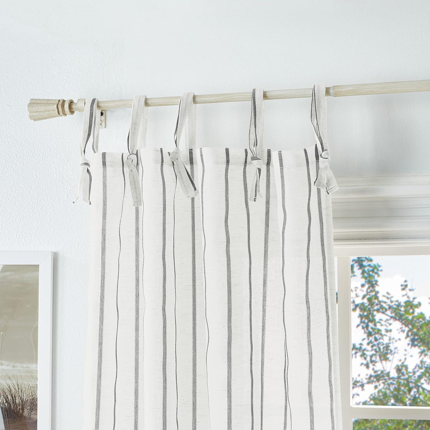 STYLING OPTIONS Easily hang striped curtains using the tie tabs; For proper fullness, fabric should measure 2 to 3 times the width of window frame (not width of window)
