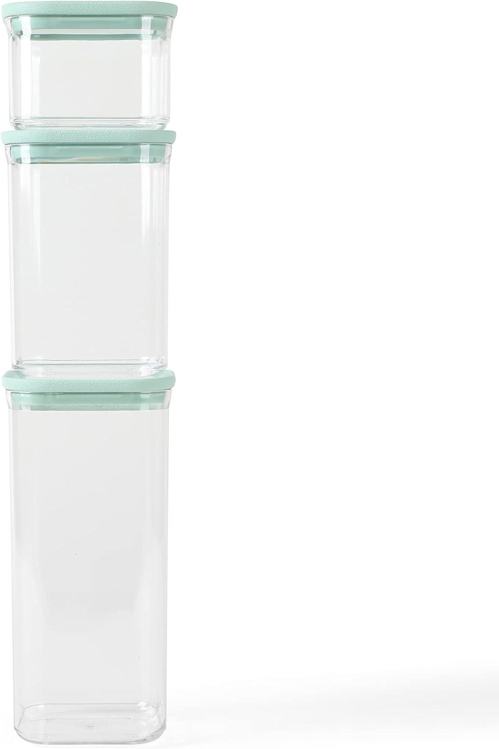 Martha Stewart Langstaff 6 Piece 92 oz, 60 oz, 26 oz Stackable Rectangular Container Set w/Martha Blue Lid(Square (60oz 37oz 17oz))