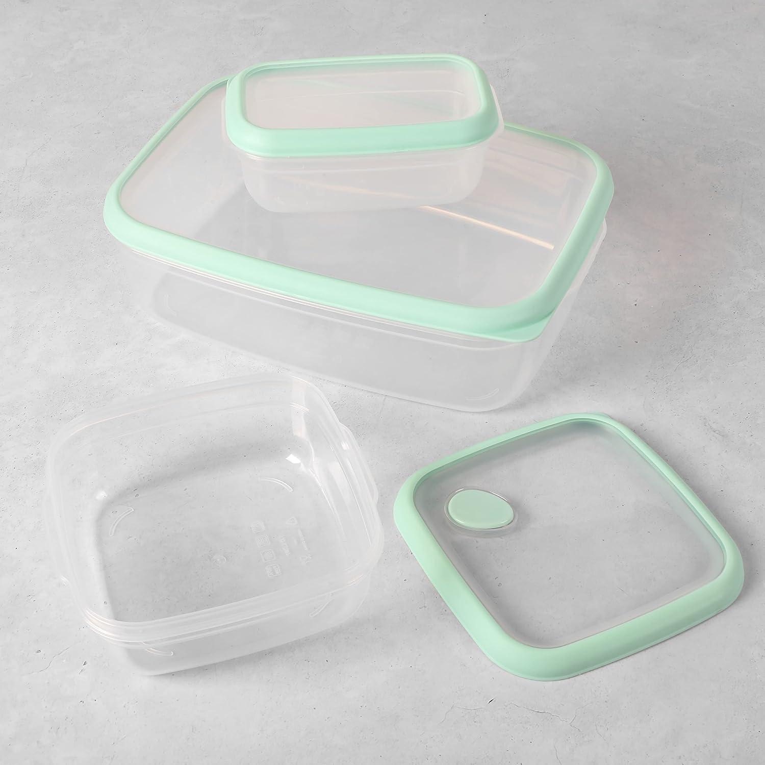 Martha Stewart Langstaff 6 Piece 92 oz, 60 oz, 26 oz Stackable Rectangular Container Set w/Martha Blue Lid(Square & Rectangular (126oz 33.3oz 16.7oz))