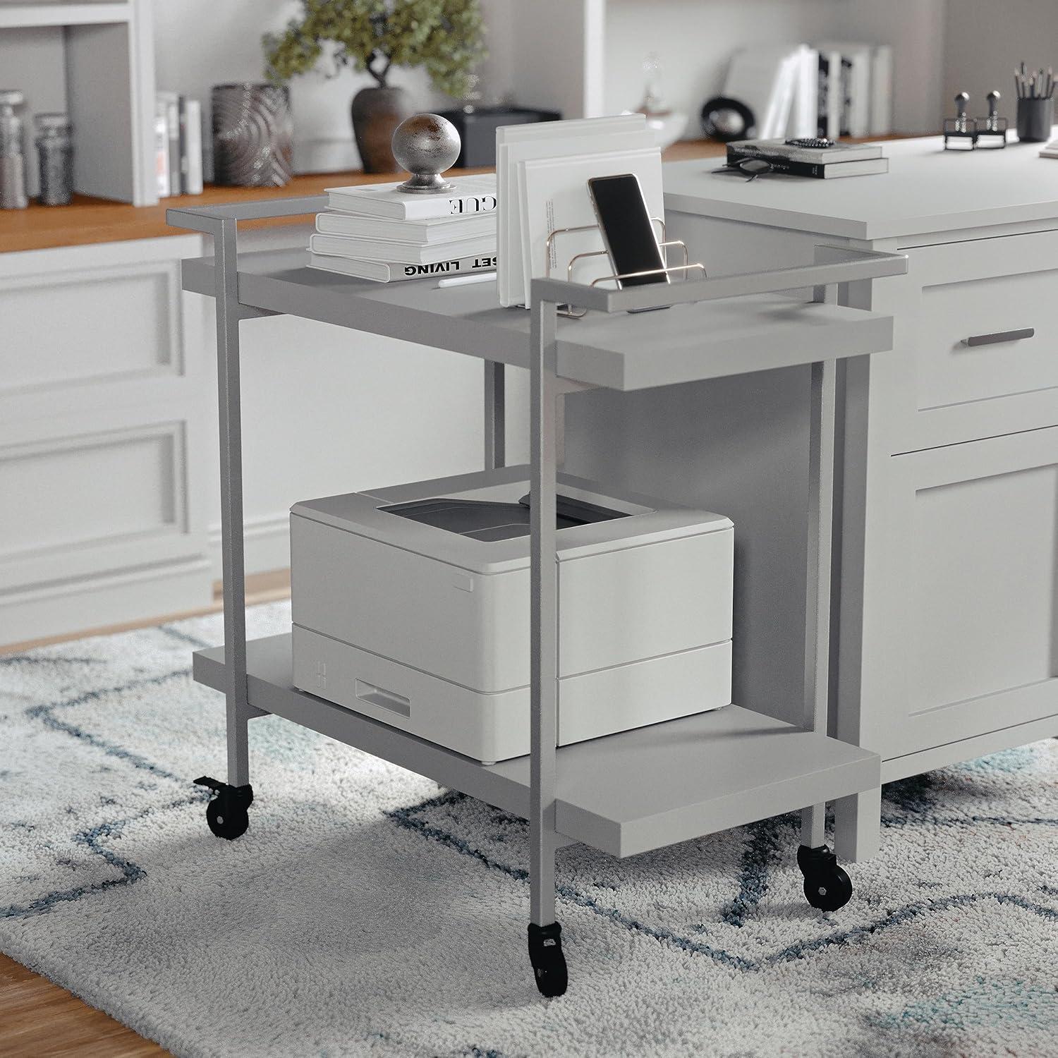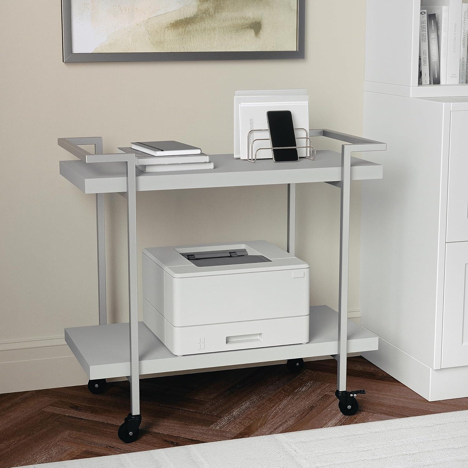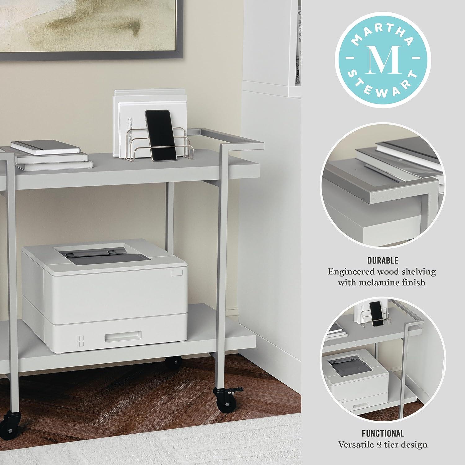 Martha Stewart Liam 2-Tier Mobile Office Storage and Printer Cart in Gray with Brushed Nickel Frame(Gray/Brushed Nickel Frame)