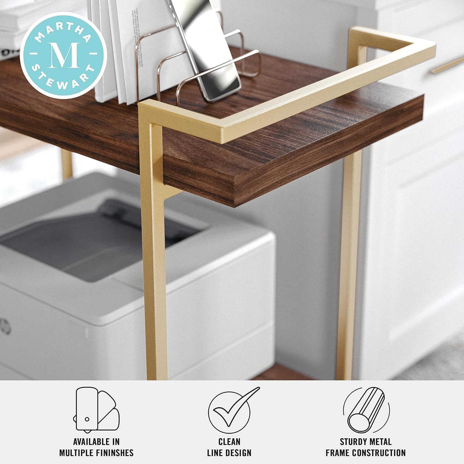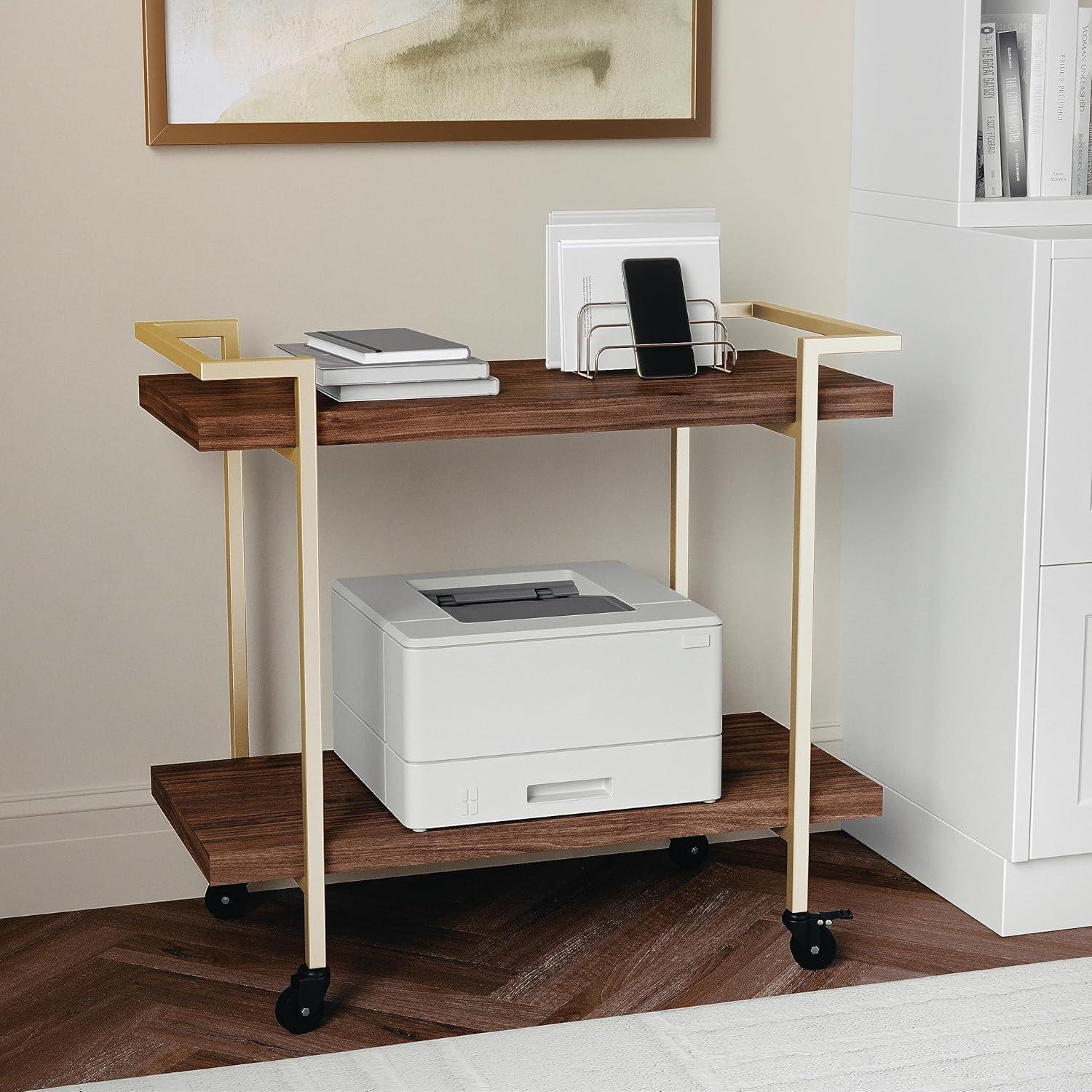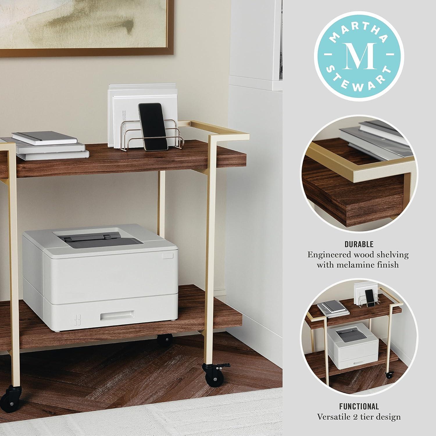 Martha Stewart Liam 2-Tier Mobile Office Storage and Printer Cart in Gray with Brushed Nickel Frame(Walnut/Polished Brass Frame)